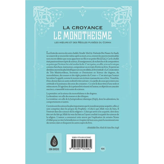 Renforcez votre foi avec notre collection de livres sur la croyance islamique (Aqida). Découvrez les fondements du Tawhid, l'unicité d'Allah, et les piliers de la foi selon la voie des pieux prédécesseurs (Salaf). Nos ouvrages traitent des 99 Noms d'Allah, du sens de "Lā ilāha illā Allah", du Paradis et de l'Enfer, offrant guidance spirituelle et sérénité du cœur. Avec des commentaires de savants reconnus comme Cheikh Ibn Baz, ces textes authentiques vous préservent des innovations (bid'a) et renforcent votre lien avec Allah. Parfait pour tout musulman souhaitant purifier sa croyance et apaiser son âme.