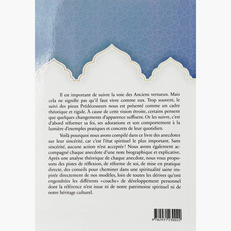 Trop souvent, le suivi des pieux prédécesseurs est réduit à une simple imitation extérieure, vidée de son sens profond. Ce livre entend rétablir le véritable héritage des Salafs en montrant que leur force résidait avant tout dans la pureté de leur foi, la sincérité de leurs intentions, et la qualité de leur comportement. Plutôt que de se limiter à un discours théorique ou à une approche rigide, l’ouvrage nous fait entrer dans la vie de ces hommes et femmes d’exception, en illustrant leur sincérité à travers des anecdotes véridiques, accompagnées de notes biographiques essentielles pour mieux les comprendre.