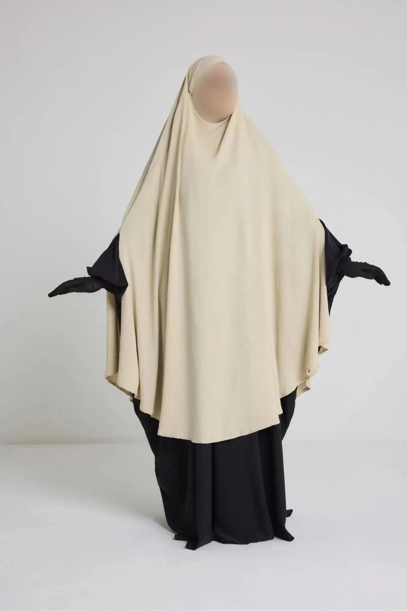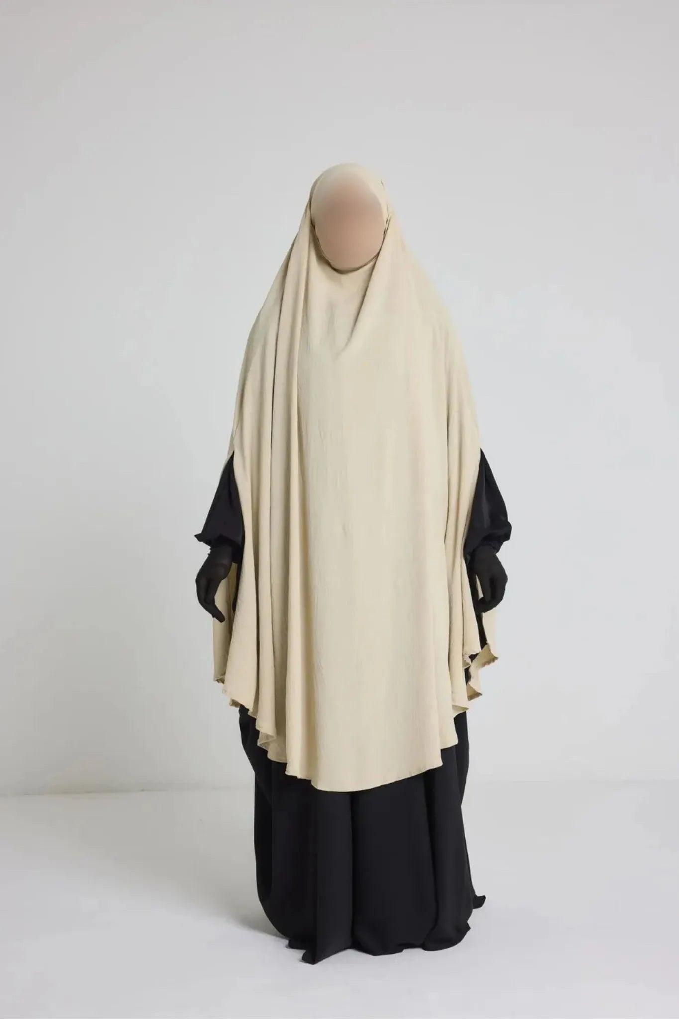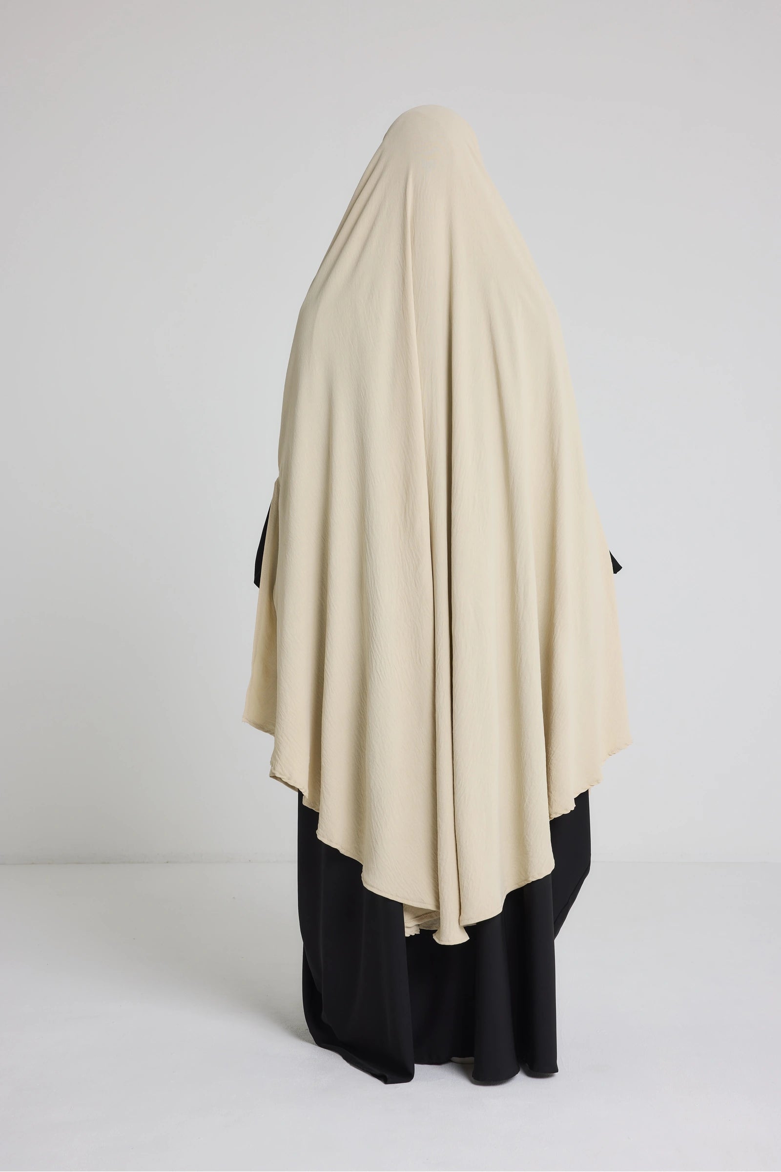 Sa coupe ample et arrondie permet une couvrance optimale du haut du corps, des bras et du buste, tout en restant aérée. Elle s’enfile simplement par la tête et reste bien en place sans besoin d’ajustement constant. Son design sobre convient parfaitement à une utilisation quotidienne, que ce soit à la maison, pour sortir ou pour accomplir la prière en toute discrétion.