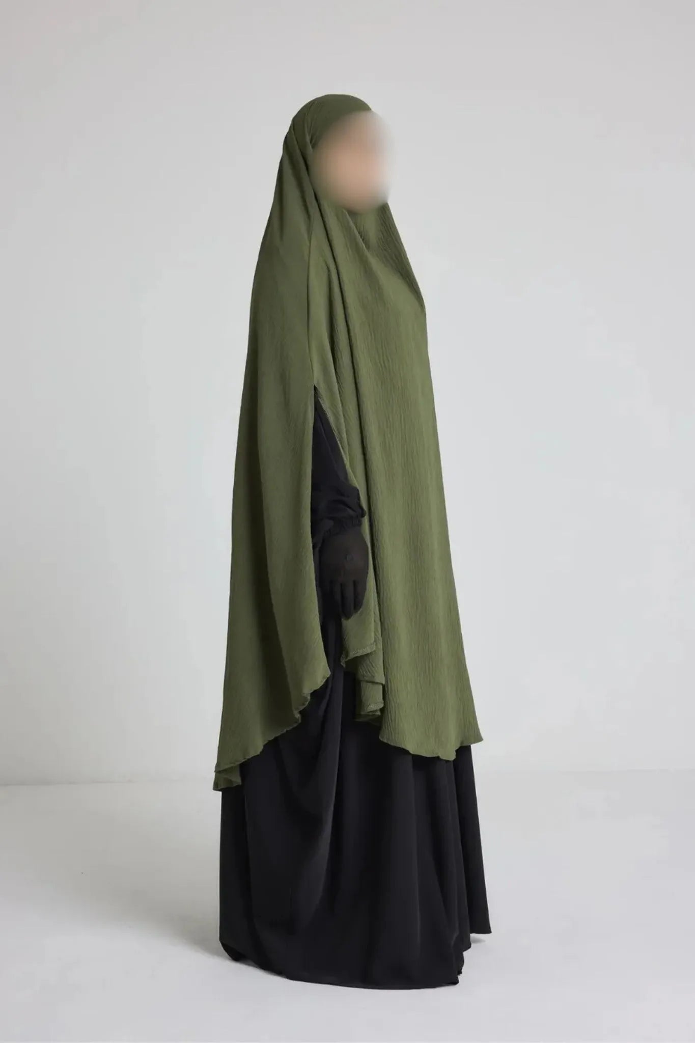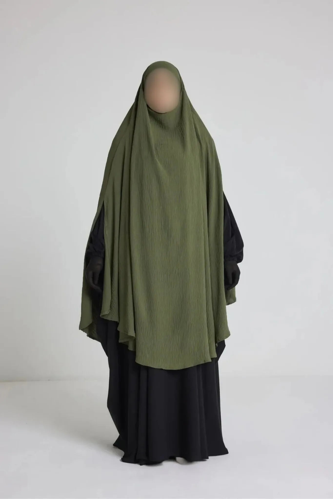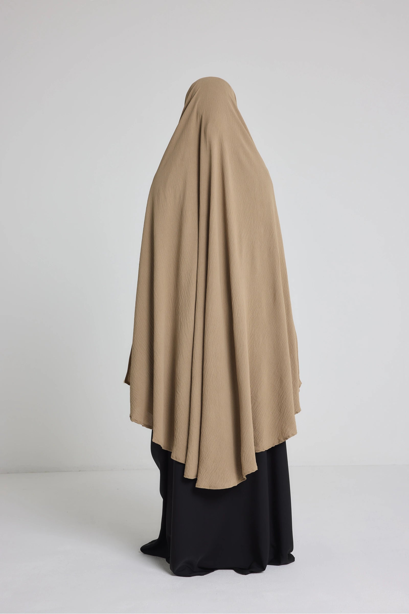 Sa coupe ample et arrondie permet une couvrance optimale du haut du corps, des bras et du buste, tout en restant aérée. Elle s’enfile simplement par la tête et reste bien en place sans besoin d’ajustement constant. Son design sobre convient parfaitement à une utilisation quotidienne, que ce soit à la maison, pour sortir ou pour accomplir la prière en toute discrétion.