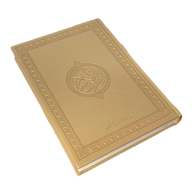 Ce noble exemplaire du Saint Coran est présenté en langue arabe uniquement, selon la célèbre lecture de Hafs d’après ‘Assim. Son format grand (17,5 x 24,5 cm) assure un confort de lecture optimal, que ce soit pour la récitation, l’étude ou la mémorisation.