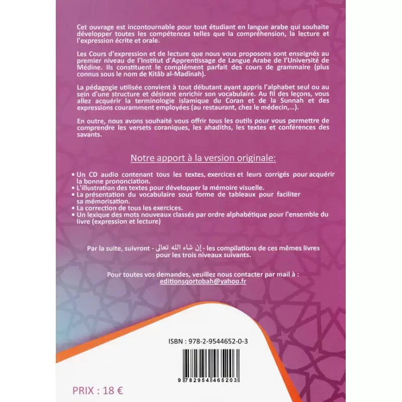 Cet ouvrage constitue un pilier essentiel pour les étudiants en langue arabe souhaitant progresser dans tous les domaines de compétence : compréhension, lecture, expression écrite et orale. Il est utilisé dans les premières années d'apprentissage à l’Institut de Langue Arabe de l’Université de Médine, et accompagne idéalement les célèbres Kitâb al-Madînah consacrés à la grammaire. Ce cours permet de consolider les bases acquises, tout en introduisant un vocabulaire utile et adapté à la pratique quotidienne.