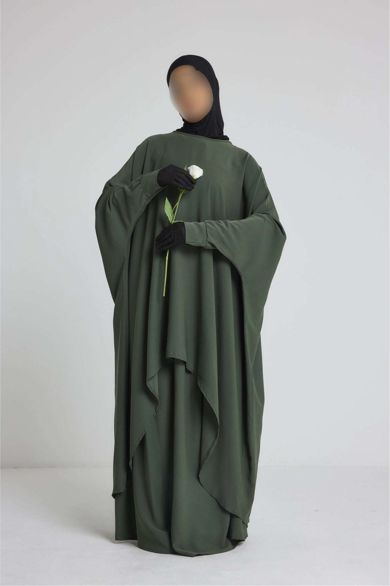 Le haut enveloppe délicatement la silhouette grâce à sa forme généreuse, tandis que la jupe assure une couvrance complète sans alourdir la tenue. L’ensemble Haya allie simplicité, pudeur et modernité, offrant une tenue à la fois pratique, chic et intemporelle. Une pièce indispensable pour celles qui recherchent un style élégant et confortable au quotidien.