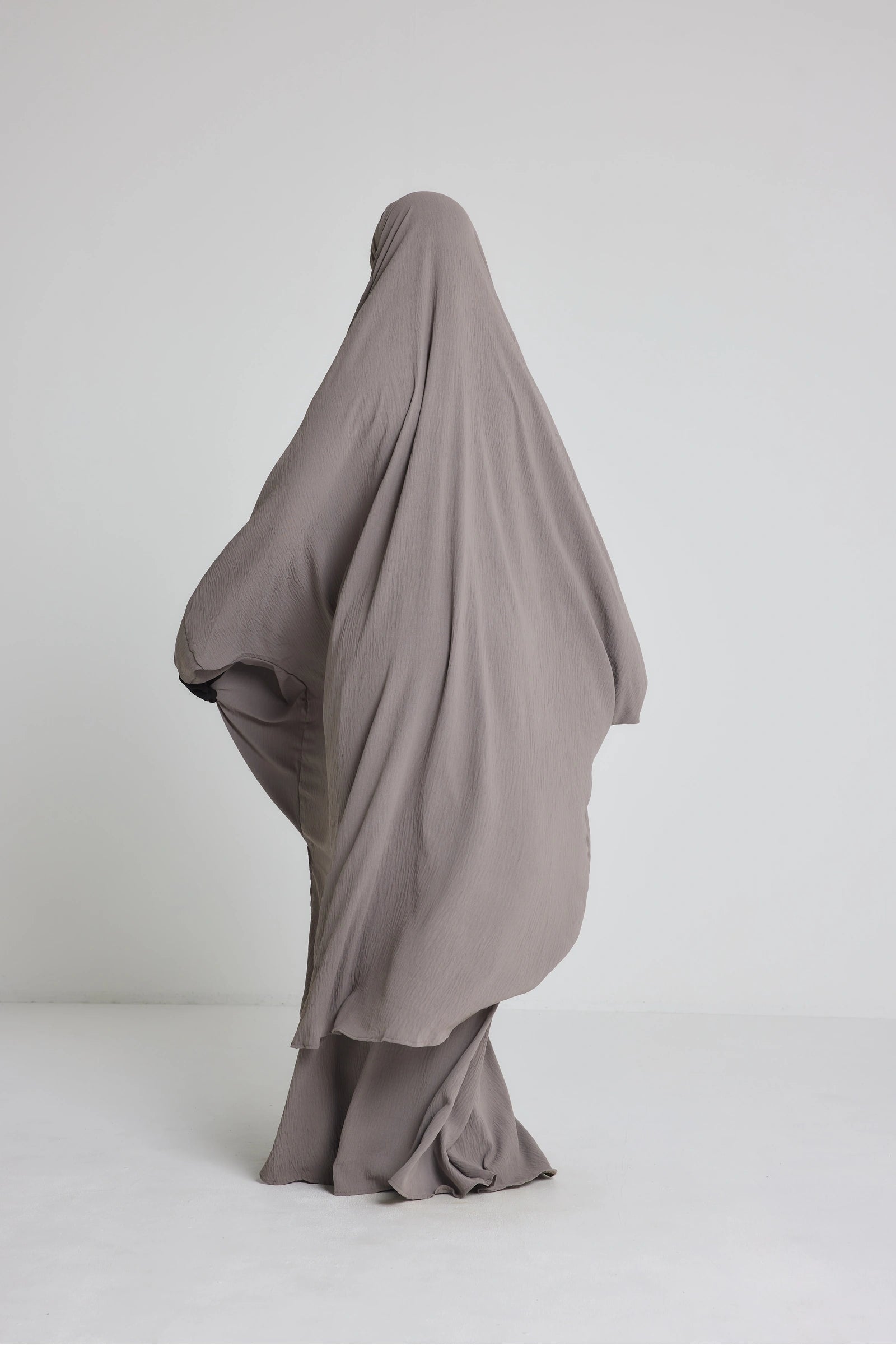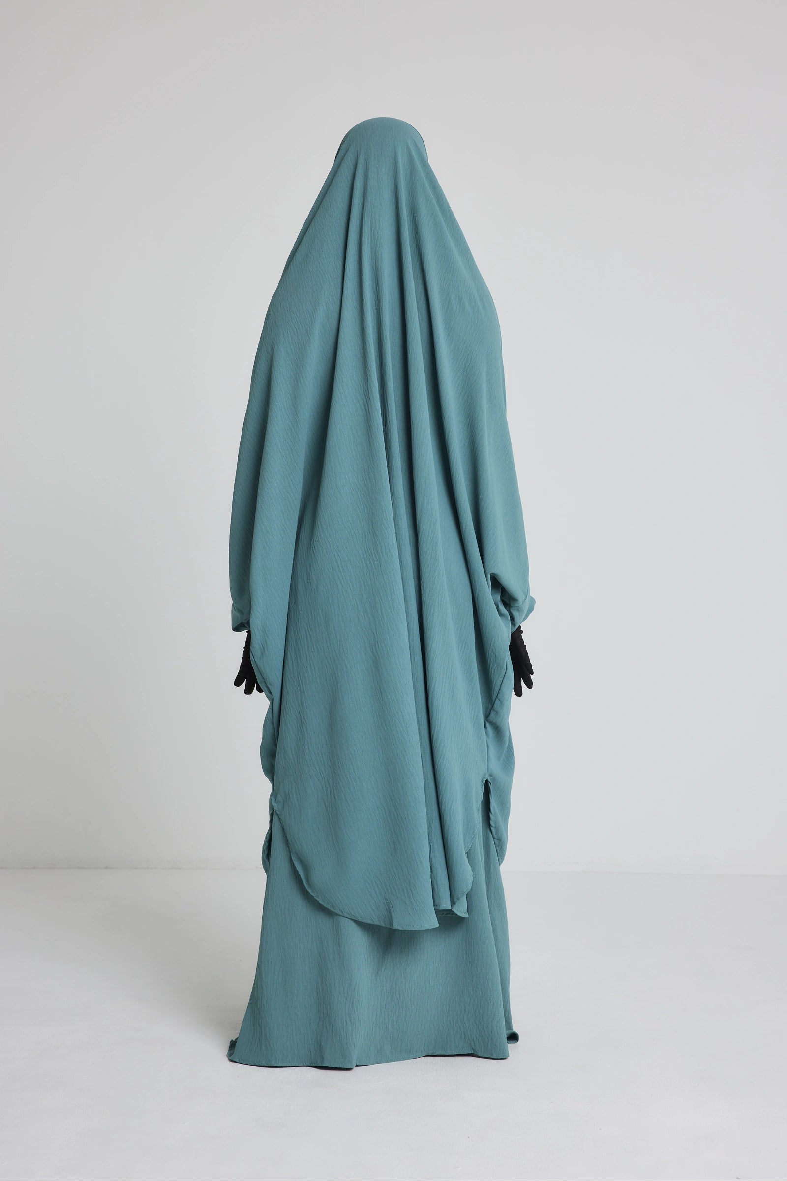Cet ensemble est idéal pour les sorties, la prière ou le quotidien. Il se distingue par sa sobriété, sa coupe fluide et sa facilité d’entretien. C’est une tenue complète et harmonieuse, qui respecte les critères de pudeur tout en restant esthétique et facile à vivre. Parfait pour les femmes qui souhaitent un jilbeb pratique, couvrant et élégant.
