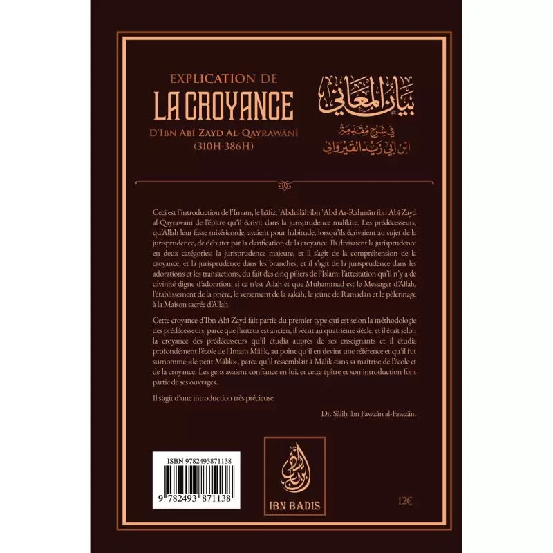 Dans cette introduction, Ibn Abī Zayd établit les principes fondamentaux de la foi musulmane : l’unicité d’Allah, la prophétie de Muhammad ﷺ, la foi aux anges, aux Livres, aux Prophètes, au Jour Dernier, ainsi qu’au destin bon ou mauvais. Sa formulation concise et claire en a fait une référence incontournable dans l’étude de l’‘aqîda selon la voie malikite.
