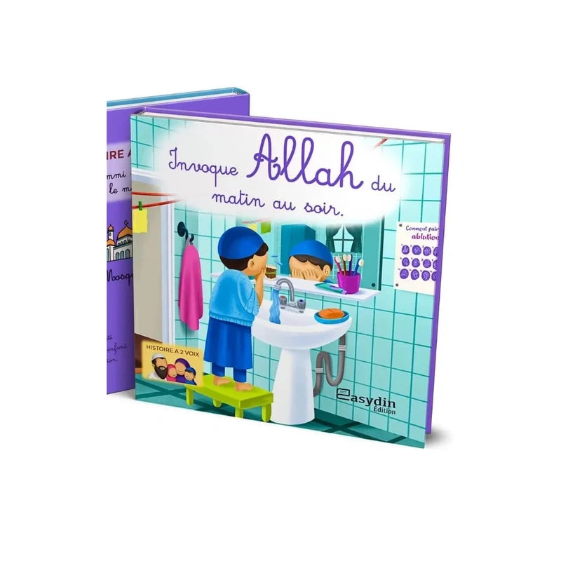 "Invoque Allah du matin au soir" suit les deux jeunes héros Adam et Aïcha tout au long de leur journée. Chaque étape, du réveil au coucher, devient un prétexte pour invoquer Allah dans un cadre familier et rassurant. L’histoire rend les invocations accessibles aux enfants en les intégrant dans des scènes du quotidien qu’ils reconnaîtront facilement, rendant l’apprentissage fluide et engageant.