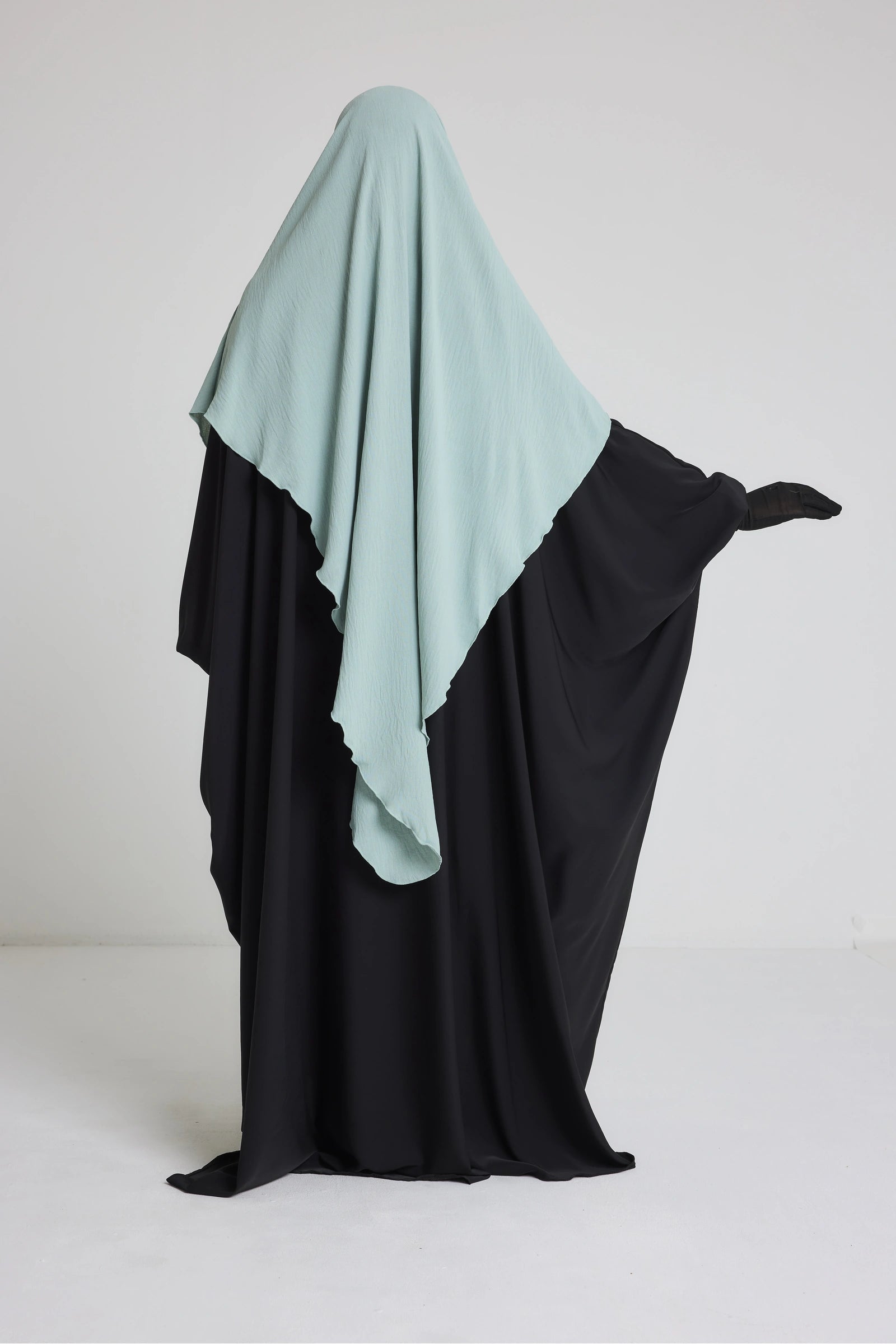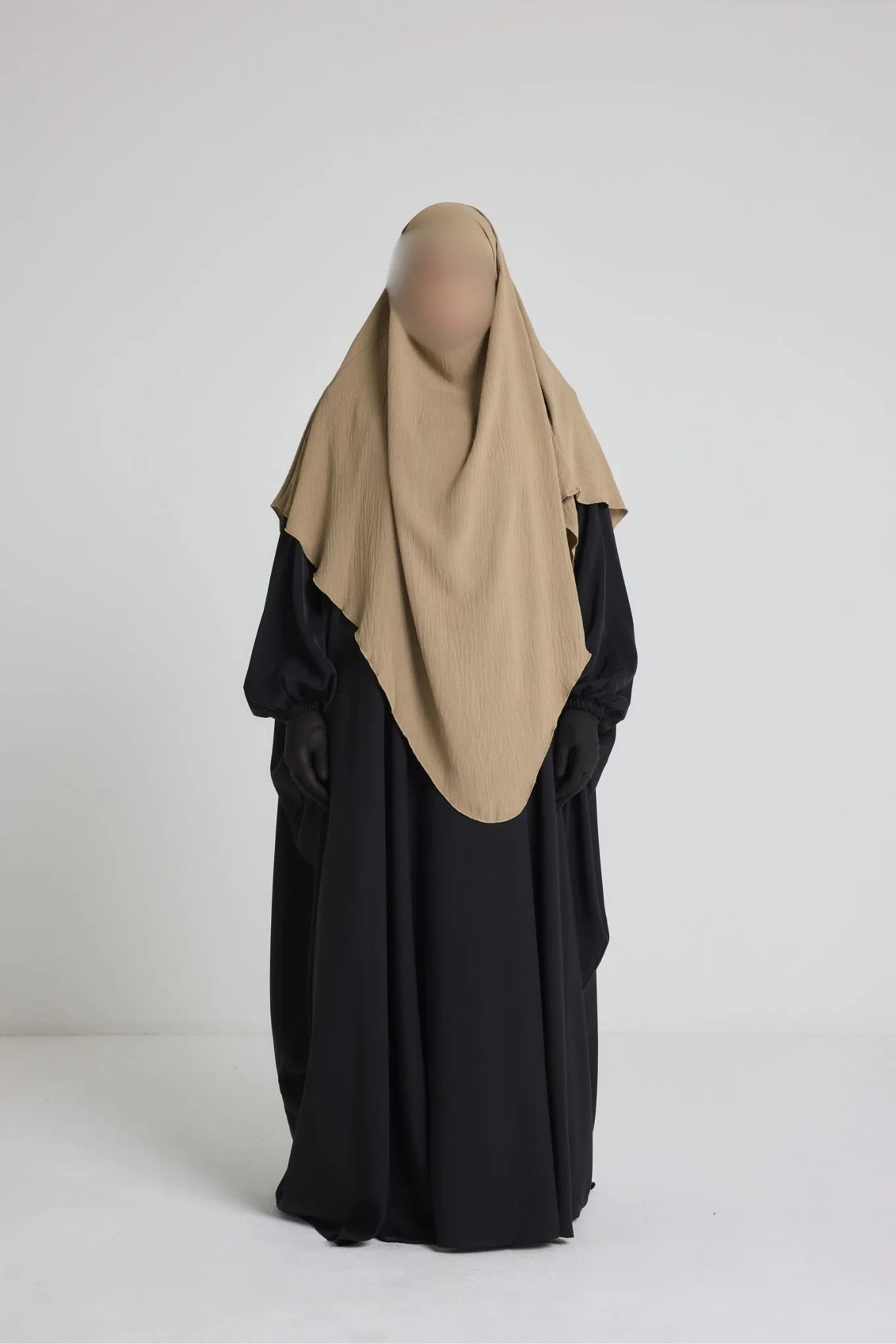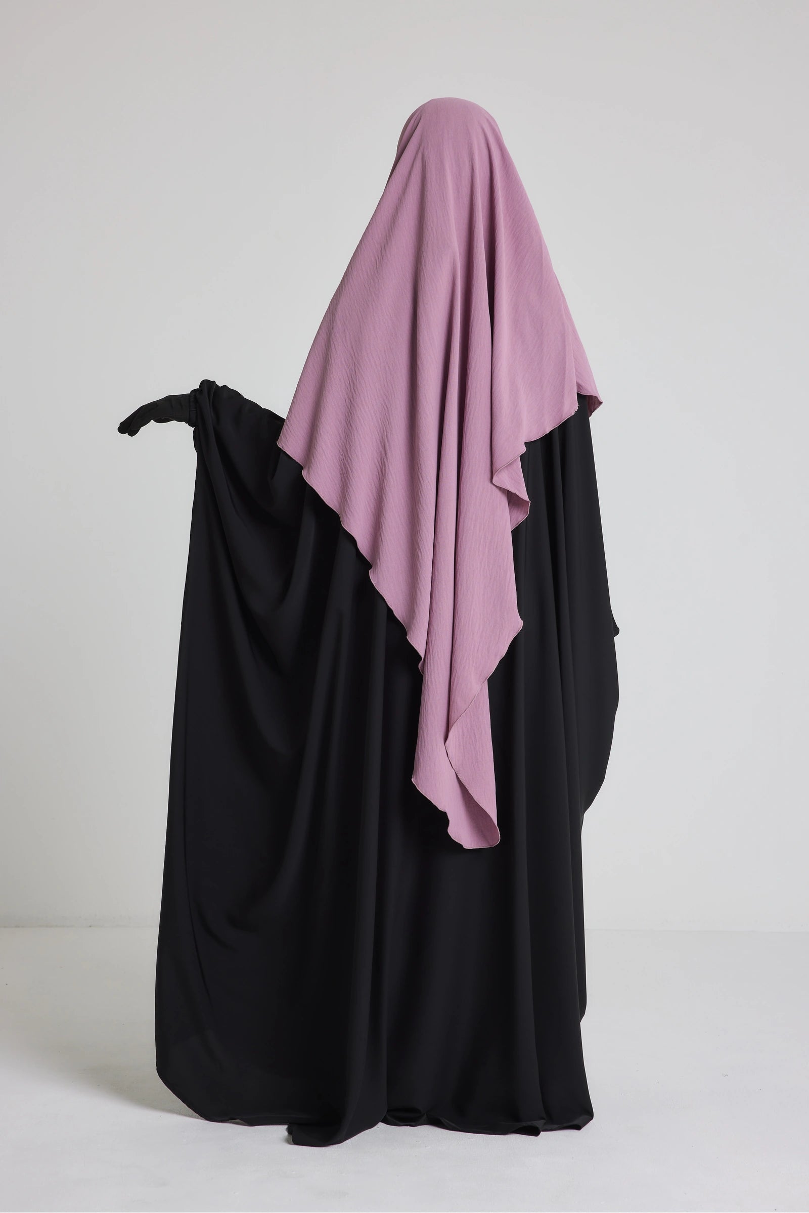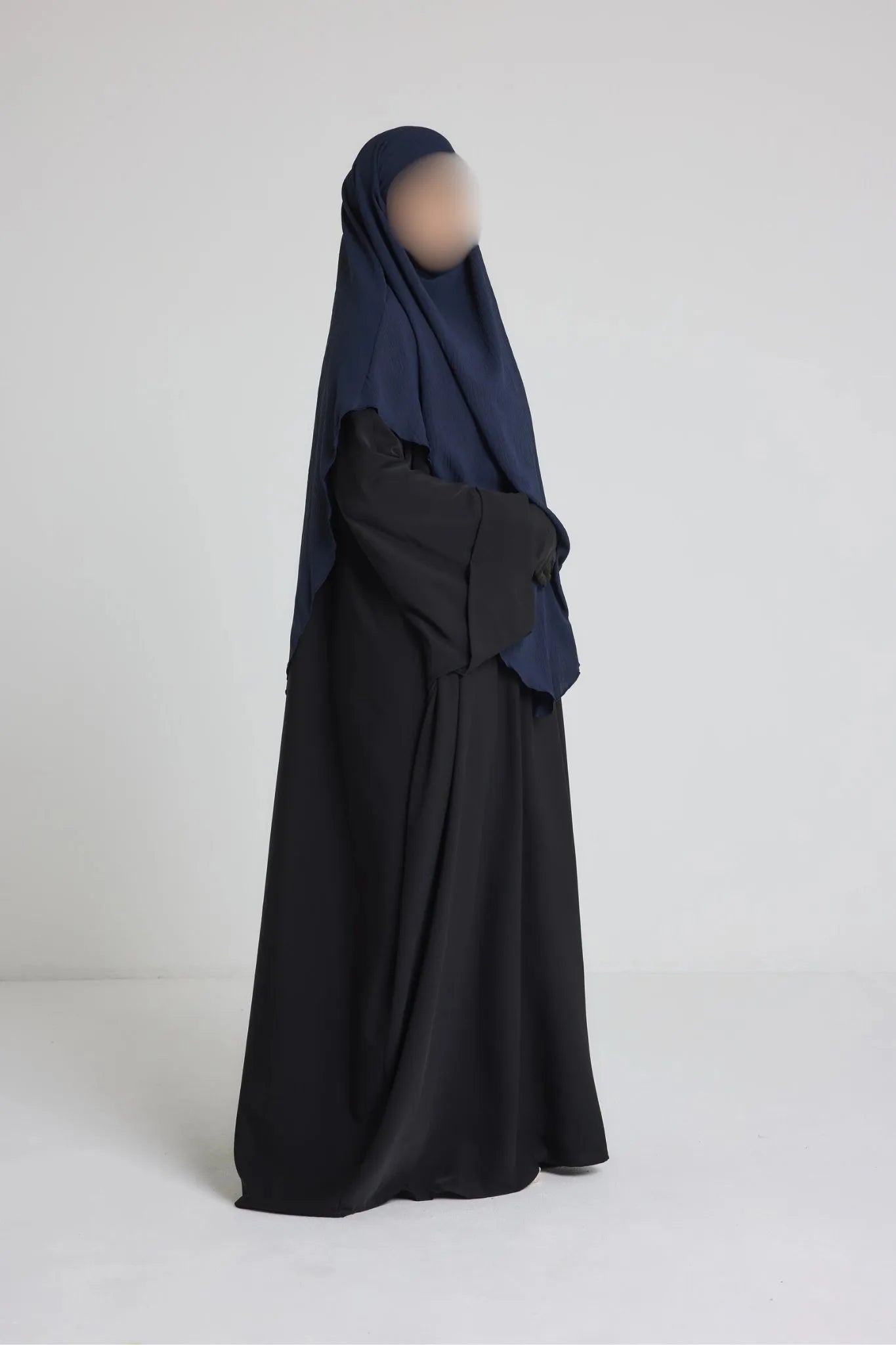 Ce modèle peut être porté seul ou en complément d’une abaya ou d’une robe ample. Il convient aussi bien aux sorties qu’aux instants de recueillement. Son style sobre et sa finition soignée en font un basique incontournable du dressing modeste, facile à accorder et à entretenir.