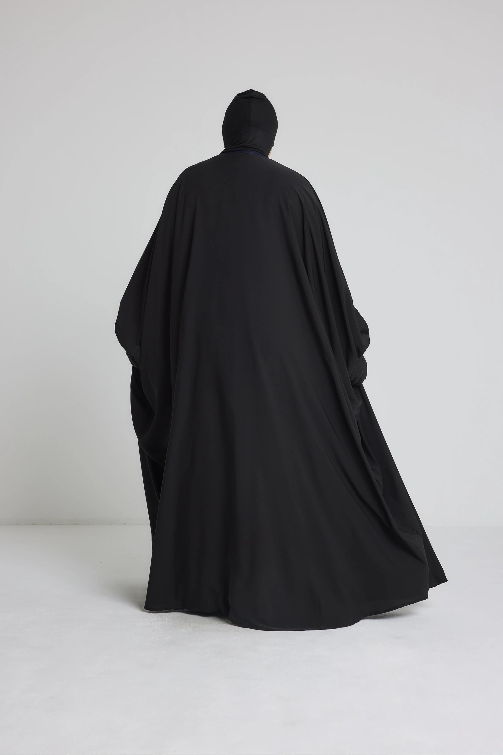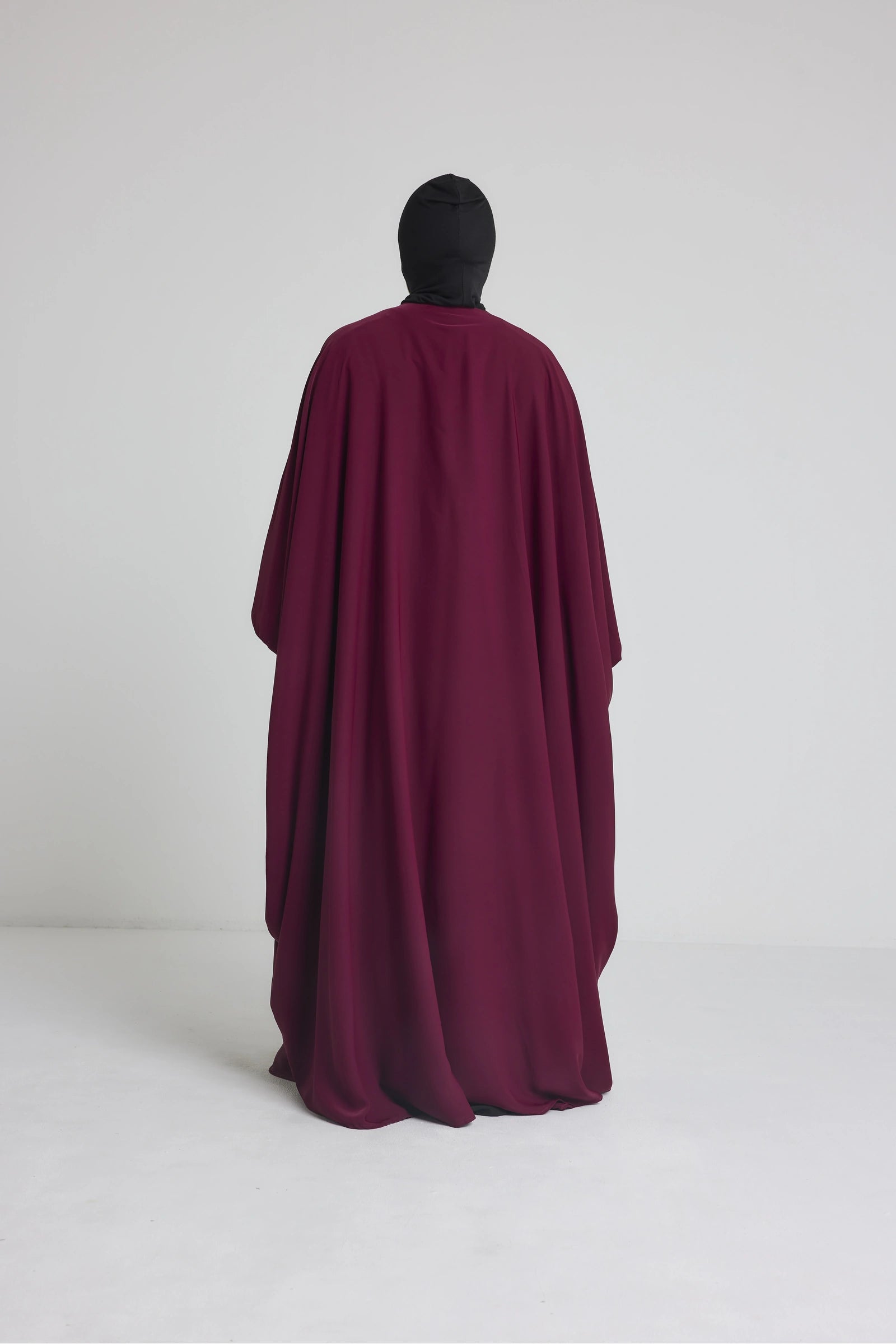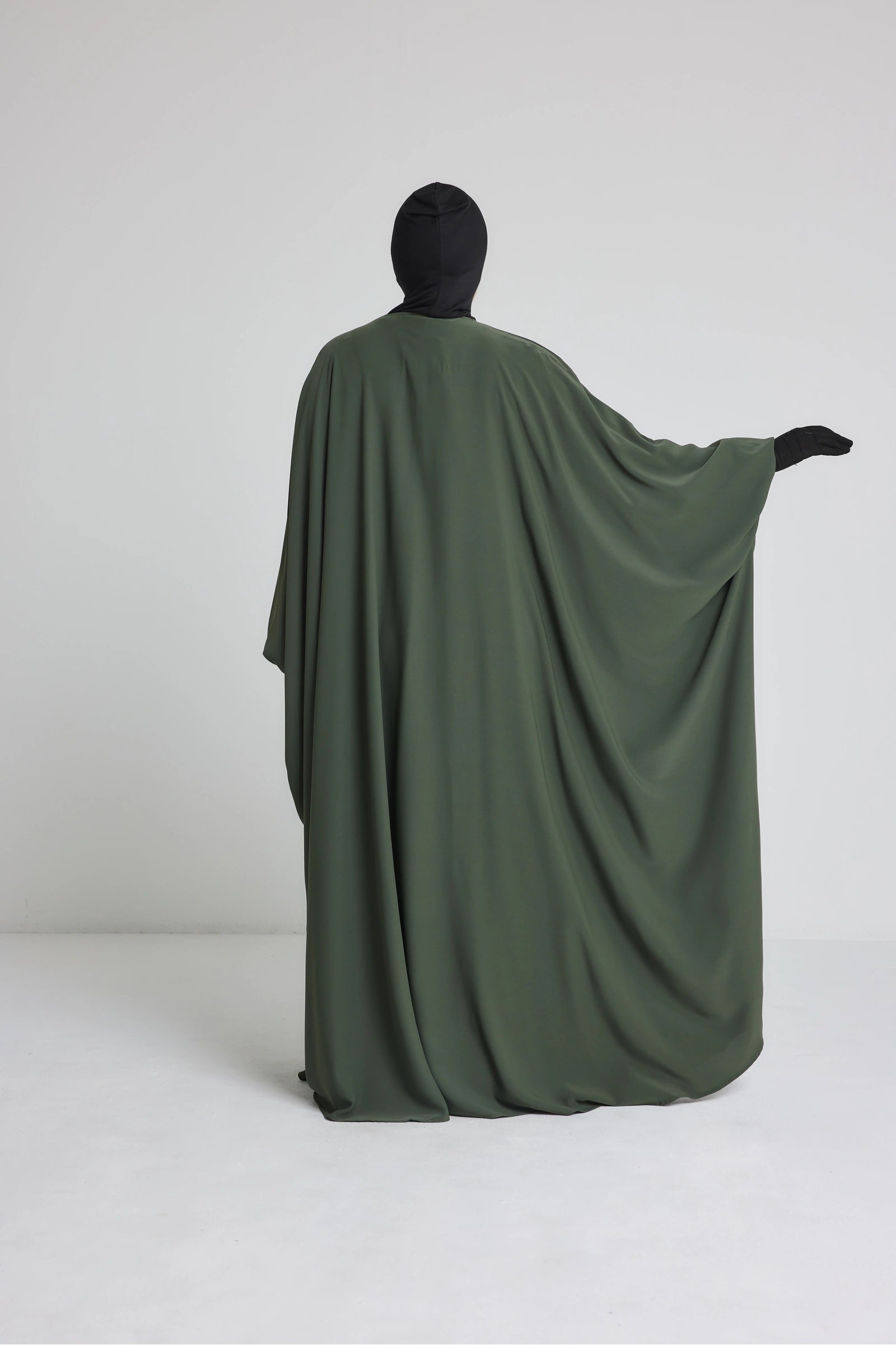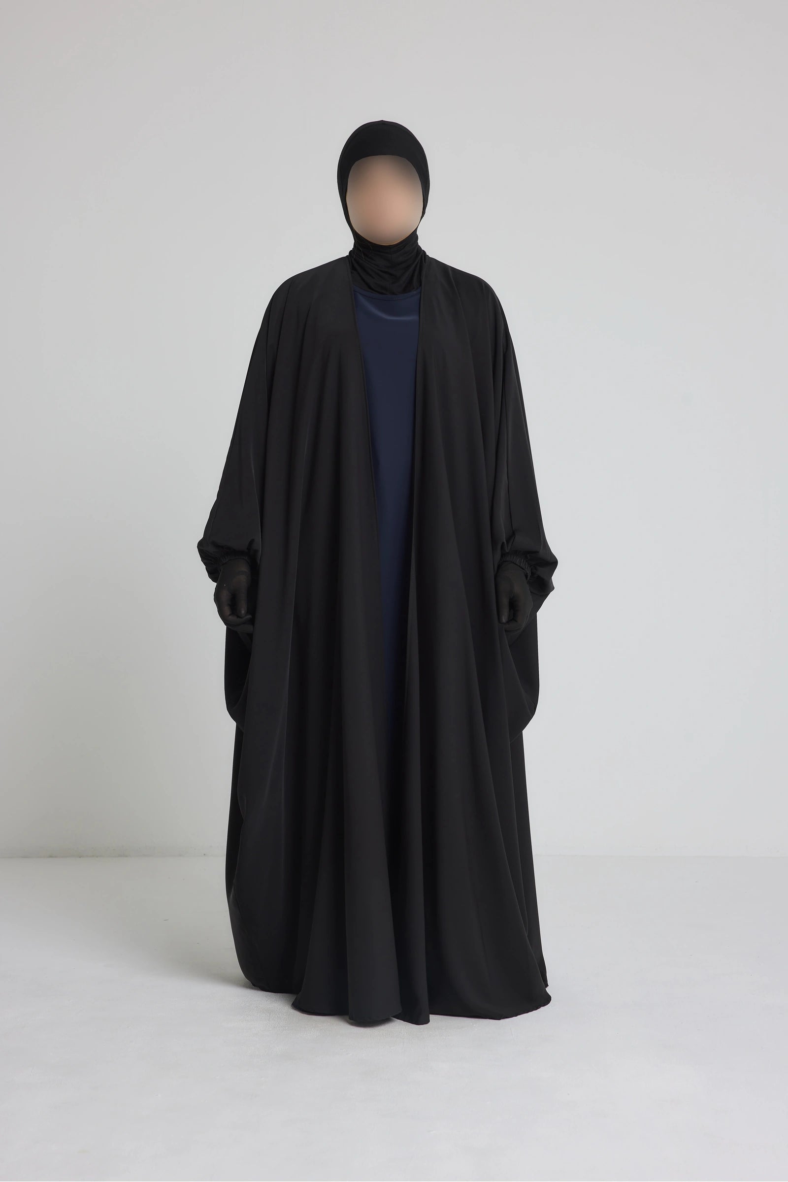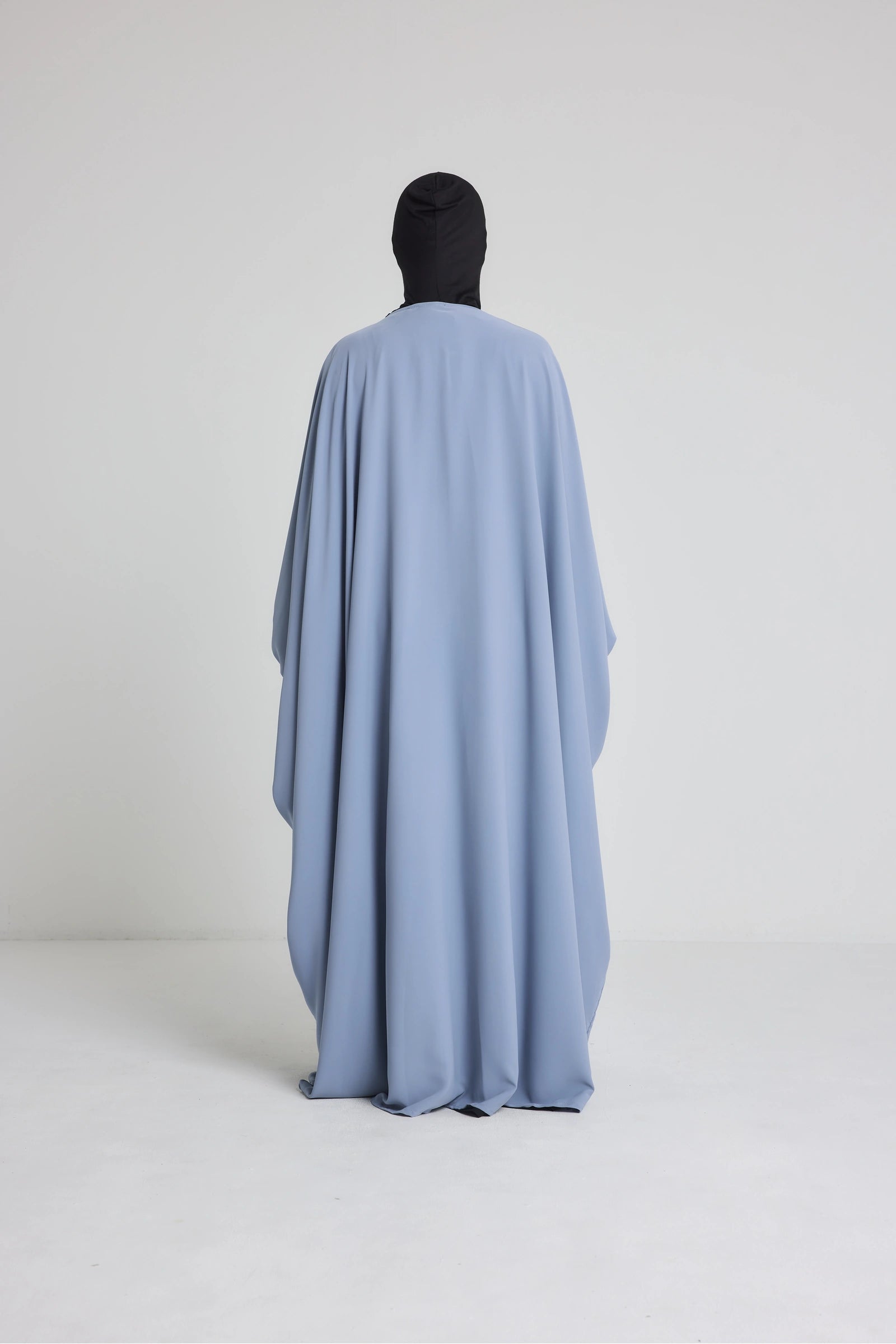 Les manches longues sont volontairement larges à la base pour plus de confort, puis resserrées au niveau du poignet par un petit bouton discret ou un élastique intégré. Ce détail permet un meilleur maintien tout en ajoutant une touche soignée à la silhouette. Le kimono peut être porté par-dessus une robe, une abaya ou un ensemble, pour compléter une tenue pudique avec classe et fluidité.