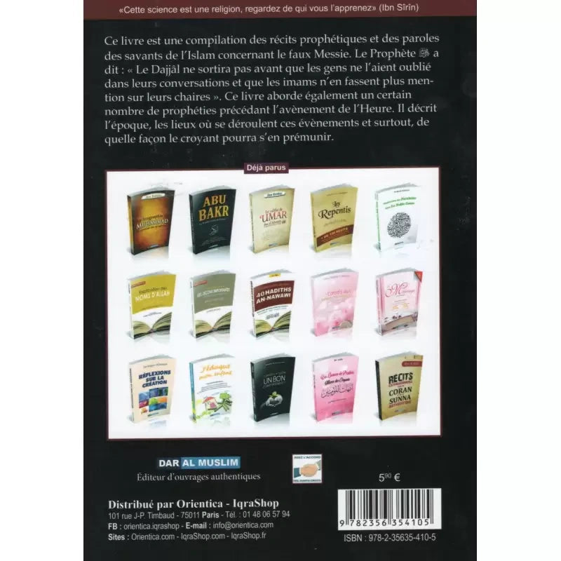 Ce livre est consacré à l’une des figures les plus redoutées de la fin des temps : le faux Messie, aussi appelé le Dajjâl. L’auteur y compile des hadiths authentiques ainsi que les paroles éclairées des savants sur ce sujet central de l’eschatologie islamique. Le lecteur y découvre non seulement les caractéristiques du Dajjâl, mais aussi les raisons pour lesquelles ce sujet est peu abordé à notre époque, alors même que le Prophète ﷺ avait mis en garde sa communauté contre ce danger majeur.