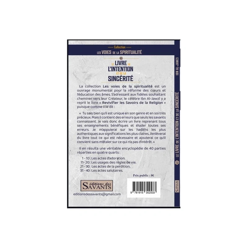 Le livre de l’intention et de la sincérité d’Ibn Al-Jawzi est un chef-d’œuvre de la littérature spirituelle islamique. Il puise sa richesse dans un travail de réécriture rigoureux visant à préserver les enseignements profonds du célèbre "Revivifier les sciences de la religion", tout en écartant les éléments douteux ou faibles. L’auteur a su recentrer le propos sur l’essentiel, en se basant sur des hadiths authentiques, dans le but de rendre la lecture bénéfique à la fois sur le fond et la forme. Le résultat : un ouvrage limpide, cohérent et nourrissant pour l’âme.