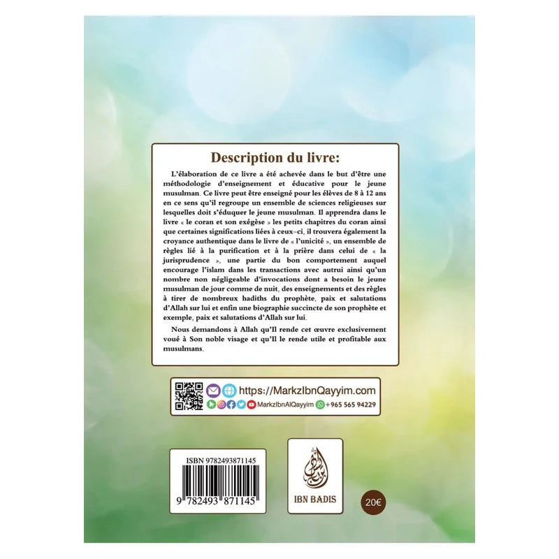 Le Trésor Précieux dans l'Établissement des Bases pour les Débutants est un manuel éducatif développé sous la supervision du Dr. Khalid ibn Dahwi ath-Thafiri pour l’Institut Ibn al-Qayyim. Conçu pour les enfants entre 8 et 12 ans, ce programme propose une approche complète et progressive de l’éducation religieuse en islam. Il regroupe plusieurs disciplines essentielles : l’apprentissage de sourates courtes du Coran accompagnées d’une exégèse simplifiée, l’étude de la croyance correcte à travers les fondements de l’unicité, l’introduction à la jurisprudence (notamment les règles liées à la purification et à la prière), les règles de comportement islamiques dans les relations sociales, ainsi qu’un ensemble d’invocations utiles au quotidien.