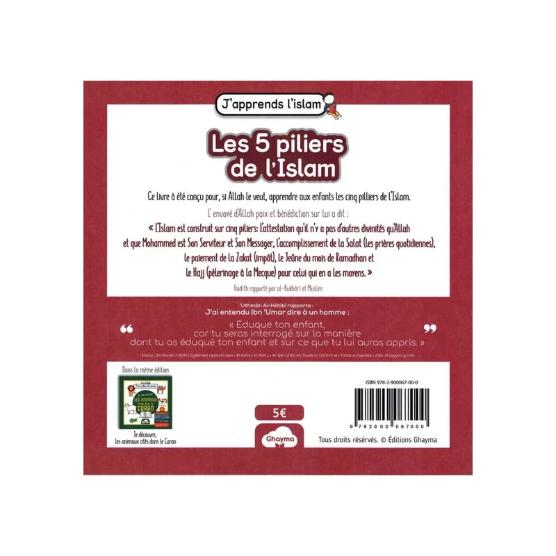 « Les 5 Piliers de l’Islam » fait partie de la collection J’apprends l’Islam des éditions Ghayma, spécialement pensée pour éveiller les enfants à la religion de manière simple, claire et engageante. À travers ce livre, ils découvrent les fondements de leur foi : la chahada, la prière, le jeûne du Ramadan, l’aumône et le pèlerinage. Chaque pilier est illustré de façon attrayante et écrit en arabe voyellisé pour une première familiarisation avec la langue du Coran.