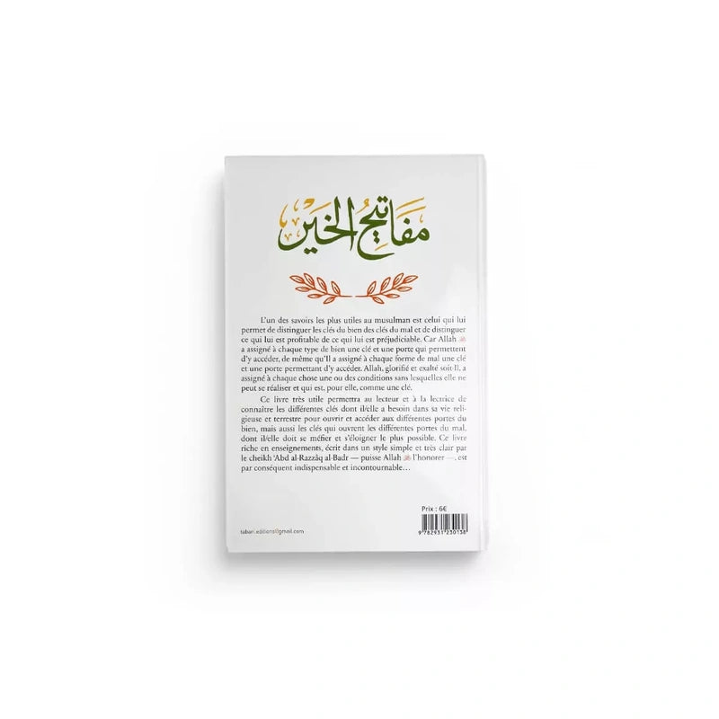 L’auteur, Cheikh ‘Abd al-Razzâq al-Badr, expose avec clarté et méthode les différentes formes de clés du bien – telles que la piété, la sincérité, le rappel d’Allah – et celles du mal, comme la négligence, la désobéissance ou la fréquentation nocive. À travers une approche pédagogique, il explique comment ouvrir les portes des vertus et refermer celles des tentations. Le lecteur apprend ainsi à organiser sa vie intérieure et extérieure autour de ce savoir précieux, pour avancer sur le droit chemin.