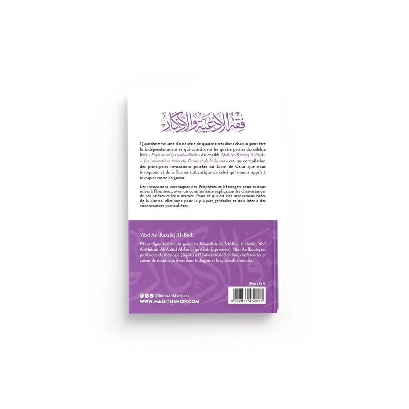 Quatrième volume d’une série consacrée aux invocations en islam, Les invocations tirées du Coran et de la Sunna du Cheikh ‘Abd Ar-Razzâq Al-Badr constitue une œuvre à part entière, pouvant être lue indépendamment. Ce livre propose une sélection riche et profonde de supplications directement extraites des paroles d’Allah dans le Coran et des enseignements authentiques du Prophète ﷺ. Il s’agit d’une véritable invitation à renouer avec l’invocation comme acte d’adoration essentiel et vivant.