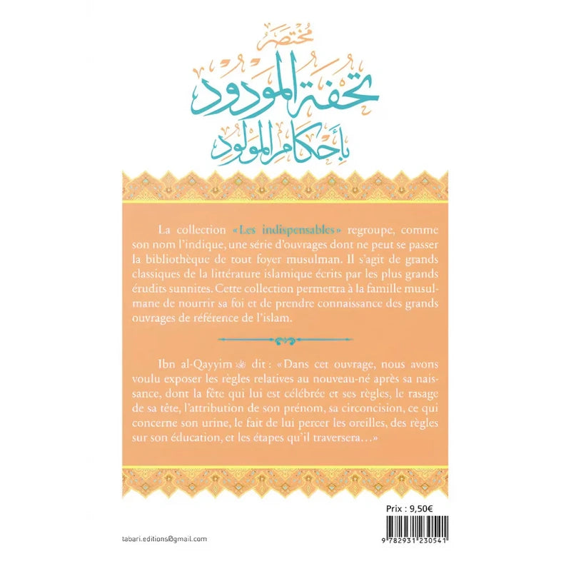 Ce manuel, concis mais riche d’enseignements, est un véritable guide pour les parents qui souhaitent accueillir et élever leur enfant dans le respect des enseignements prophétiques. Il offre un équilibre rare entre les prescriptions religieuses et la sensibilité éducative, permettant au lecteur d’adopter une approche éclairée, sereine et conforme à la tradition islamique. Ce livre s’adresse aussi bien aux futurs parents qu’aux éducateurs désireux d’approfondir leur connaissance sur les droits et les devoirs liés à la naissance en islam.