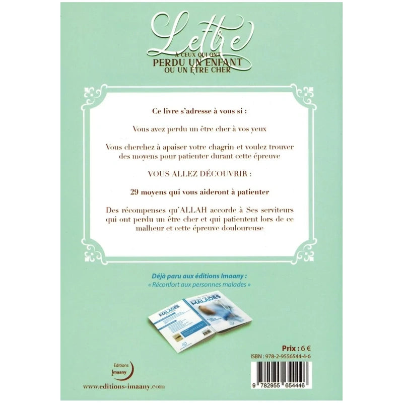 Ce livre se présente comme une main tendue vers ceux que le chagrin a isolés. Il ne prétend pas effacer la douleur, mais invite à la vivre autrement, avec dignité, soumission à Allah, et espoir dans Sa miséricorde. Chaque mot y est mesuré, pensé pour apaiser et ramener vers Celui qui n’abandonne jamais Ses serviteurs, même dans les moments les plus sombres. À offrir ou à garder près de soi dans les instants où le cœur a besoin de soutien.