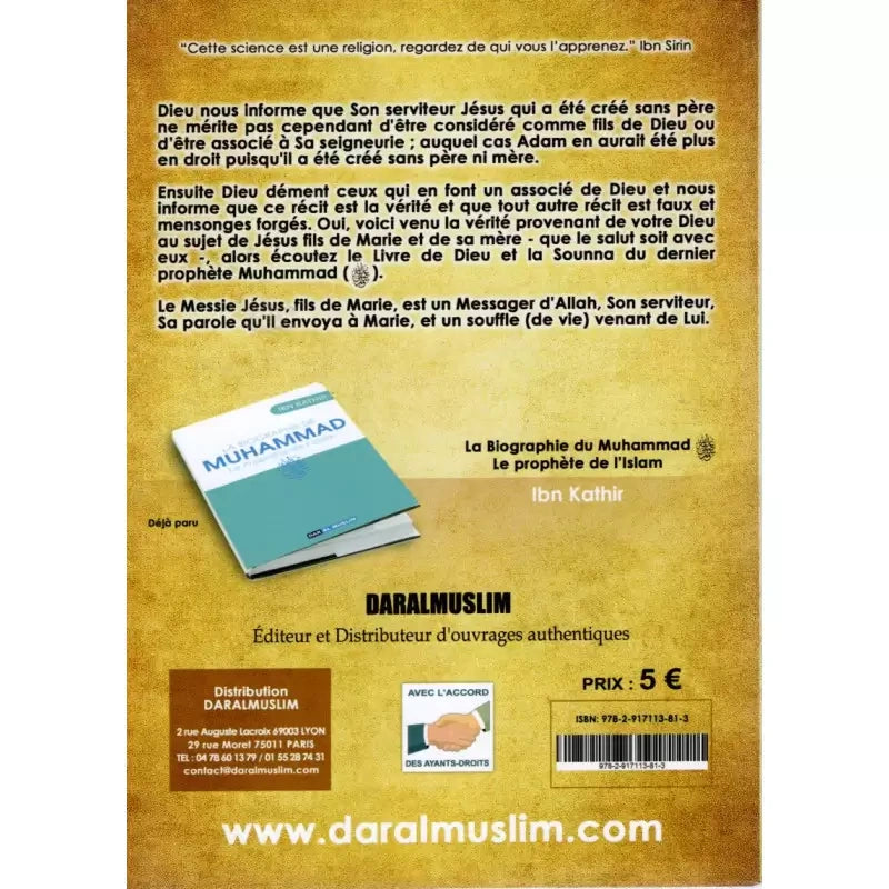 Ce texte se veut donc avant tout une invitation à revenir aux fondements sûrs : la parole de Dieu et la voie de Son dernier Prophète. Il éclaire la position de l’islam sur une figure majeure reconnue mais souvent mal comprise, en soulignant l’importance de s’en remettre aux sources authentiques pour ne pas tomber dans l’erreur. Un ouvrage utile pour fortifier sa croyance et mieux saisir la cohérence du message divin.