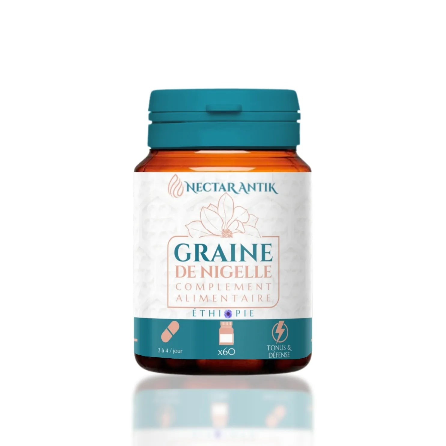 Découvrez les Gélules Graine de Nigelle d’Éthiopie Nectar Antik, un complément 100 % naturel issu d’une mouture fine et pure.