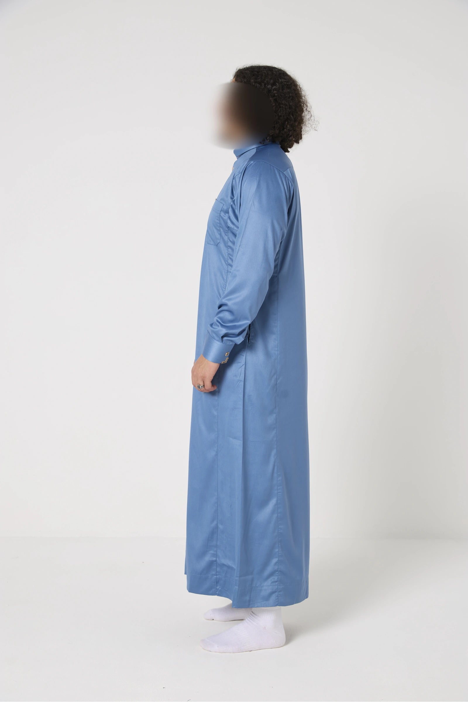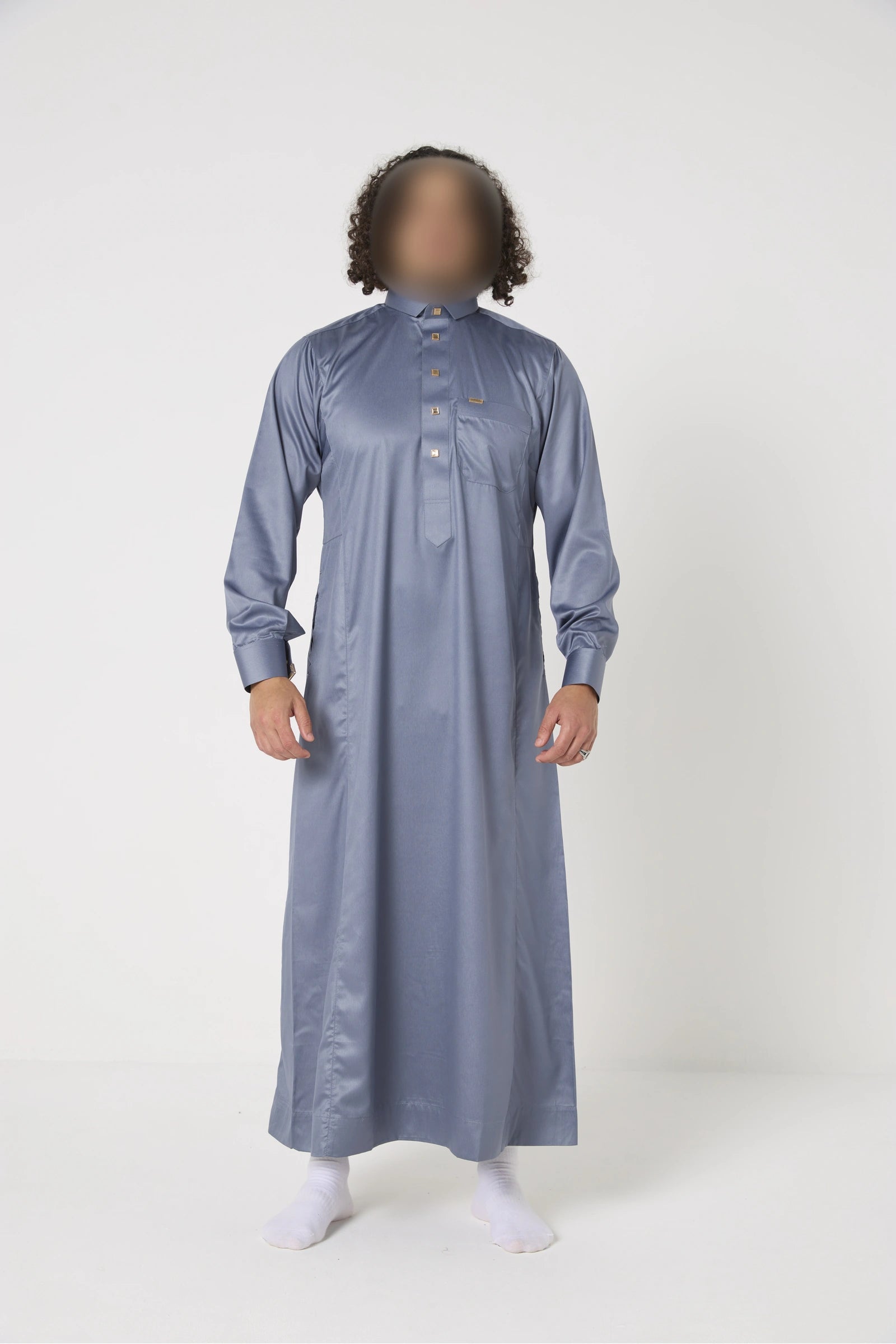 ✨ Qamis Al Haramain Col sans Pantalon – Le qamis Al Haramain est un modèle haut de gamme au style coréen élégant, vendu sans pantalon pour offrir une plus grande liberté d'association. Sa coupe épurée et son col raffiné en font un choix de prédilection pour les hommes qui apprécient les tenues à la fois sobres et distinguées. Ce modèle se caractérise par des lignes fluides, un col soigné avec boutons décoratifs dorés et une coupe légèrement ajustée qui confère une allure moderne et structurée. Le tissu de qualité premium assure un confort remarquable et un tombé élégant. Les finitions haut de gamme — coutures impeccables, broderie discrète et logo Al Haramain — témoignent du savoir-faire de la marque. La double taille (taille numérique + lettre) vous permet de trouver l'ajustement parfait. Disponible en six teintes raffinées — noir, bleu marine, champagne, bleu, blanc et gris — ce qamis s'impose comme une pièce maîtresse de votre garde-robe, adaptée aussi bien au quotidien qu'aux grandes occasions.