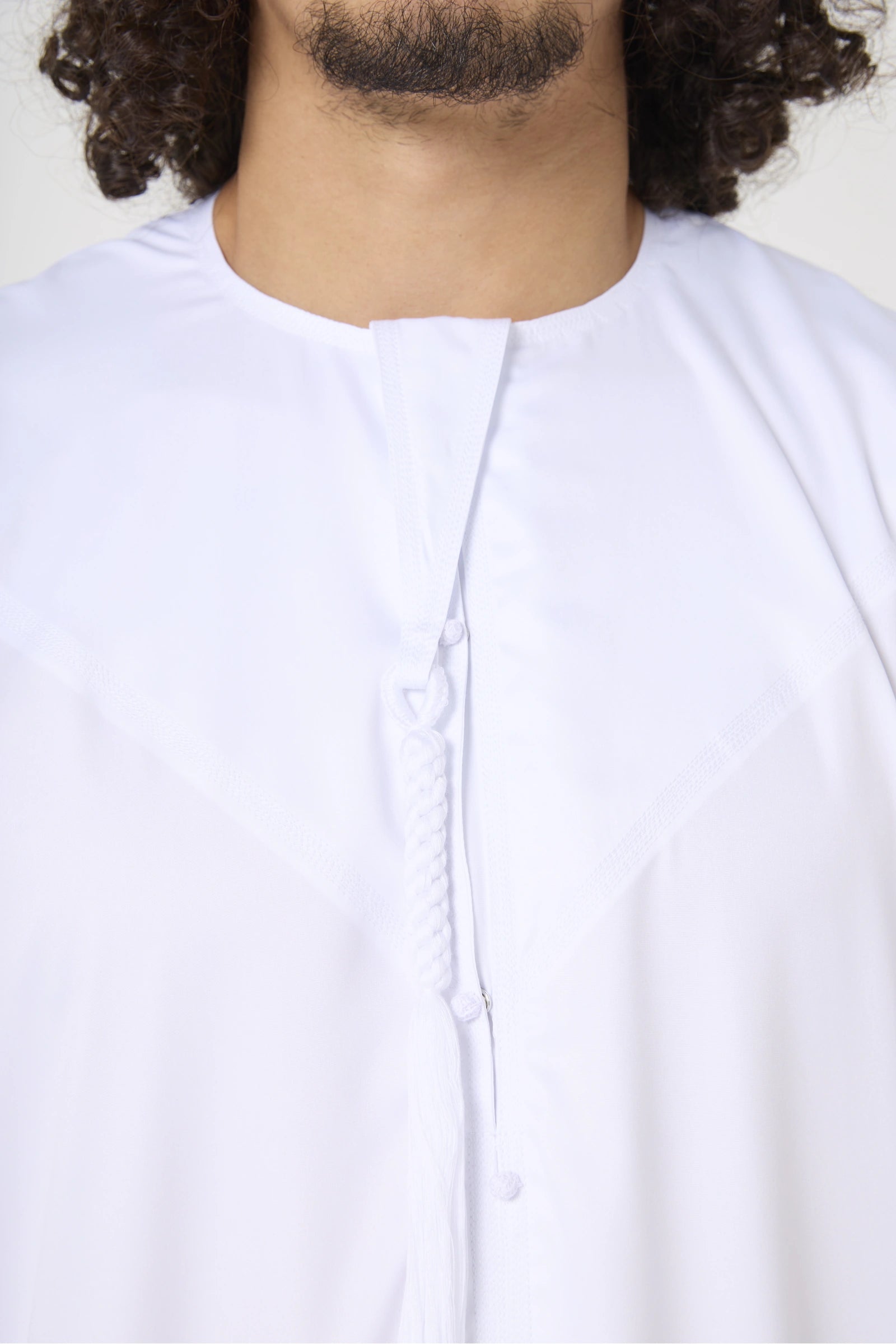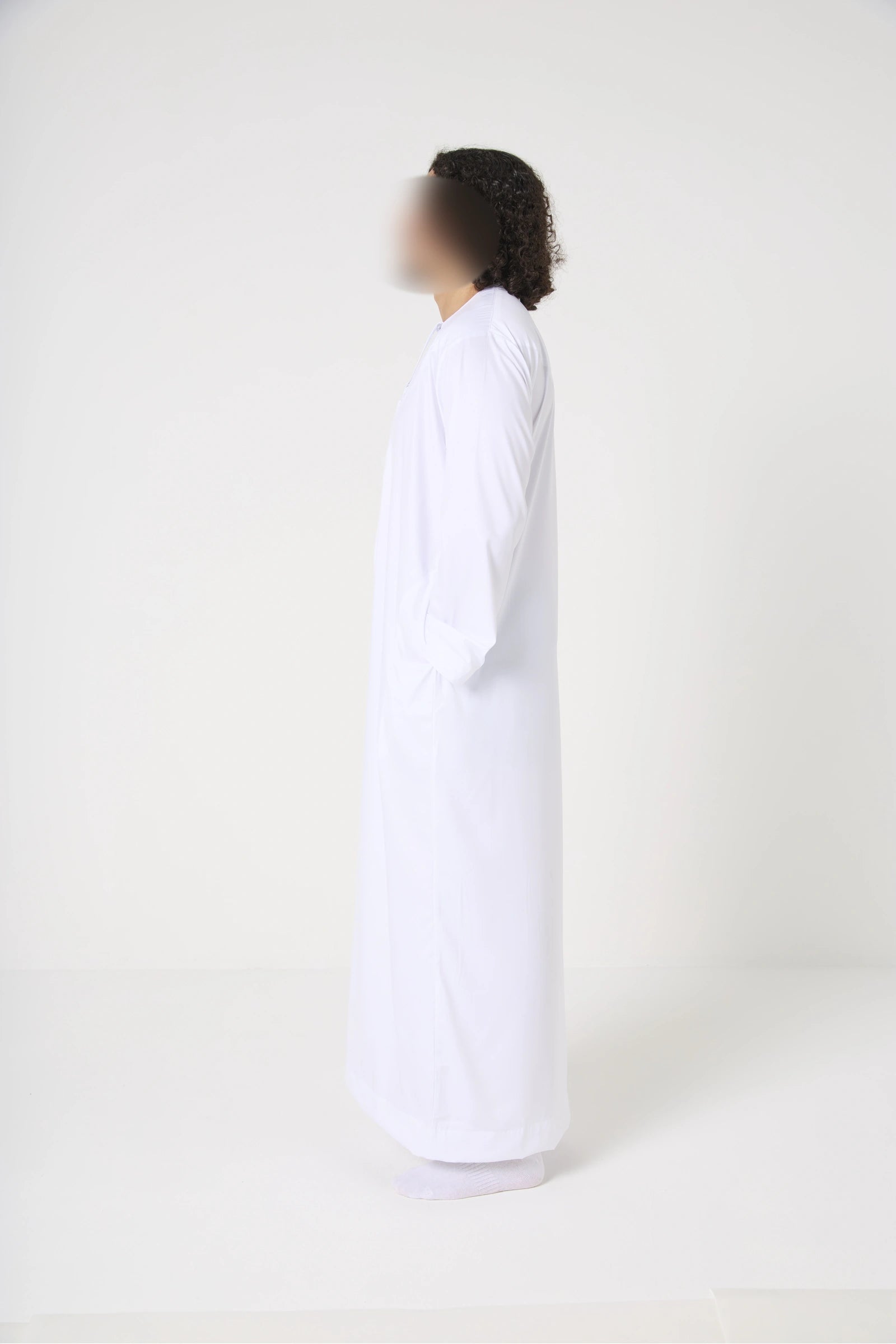 Découvrez le qamis Emirati Dini Dubai, la pièce maîtresse de la collection Dini Men. Inspiré du style émirati raffiné, ce qamis allie tradition et modernité avec une coupe longue et élégante, typique des tenues portées dans les pays du Golfe. Son tissu de qualité supérieure offre un tombé impeccable et un confort optimal tout au long de la journée.