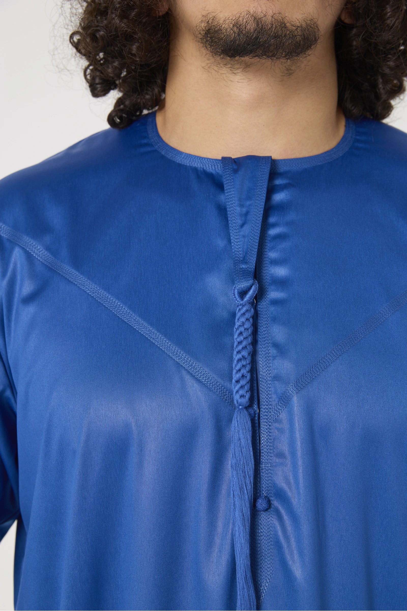 Disponible en dix coloris soigneusement sélectionnés — noir, blanc, bleu roi, bleu marine, marron chocolat, vert kaki clair, vert royal foncé, beige, gris clair et gris foncé — ce qamis s'adapte à toutes les occasions : prière du vendredi, fêtes de l'Aïd, événements familiaux ou simplement pour le quotidien.