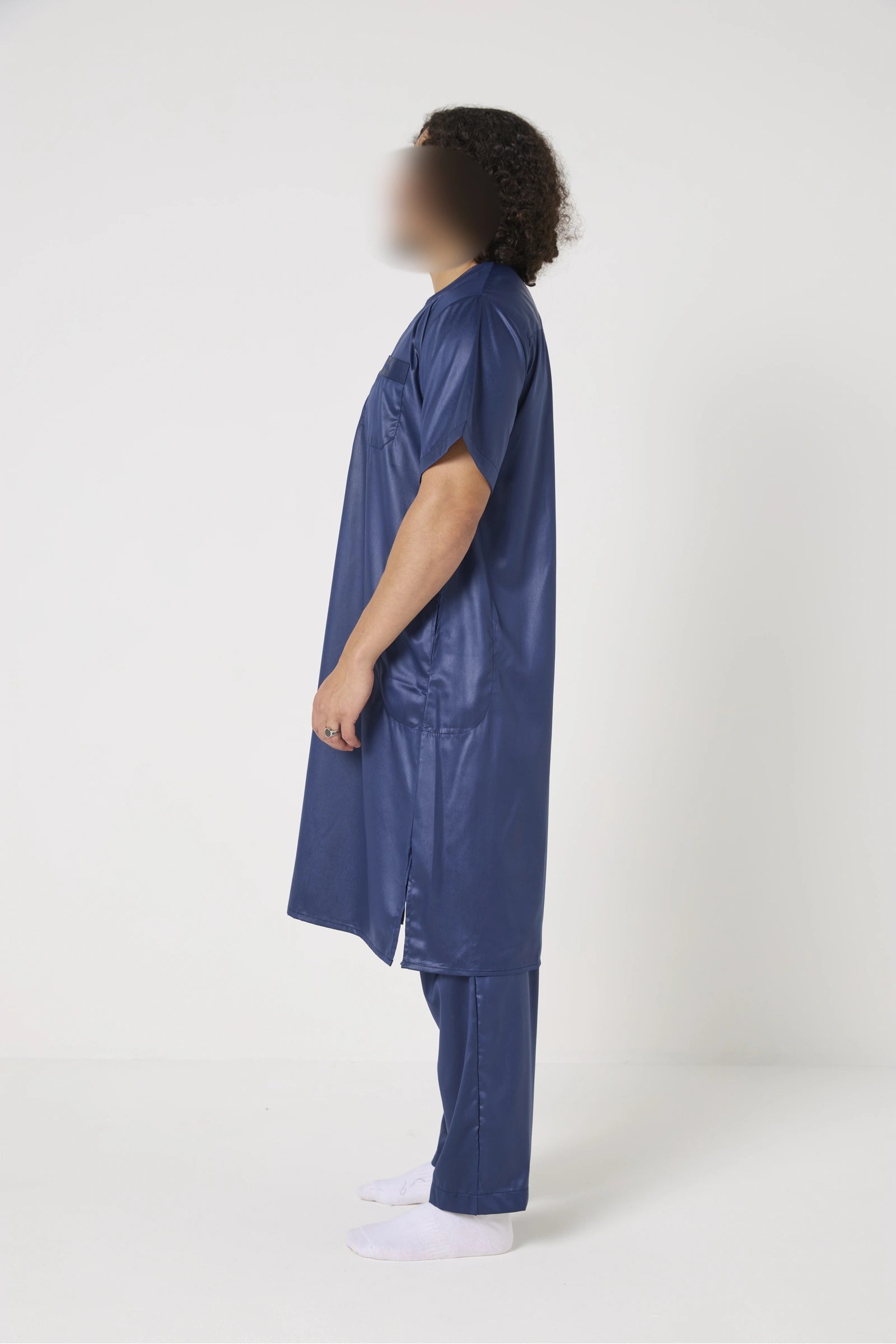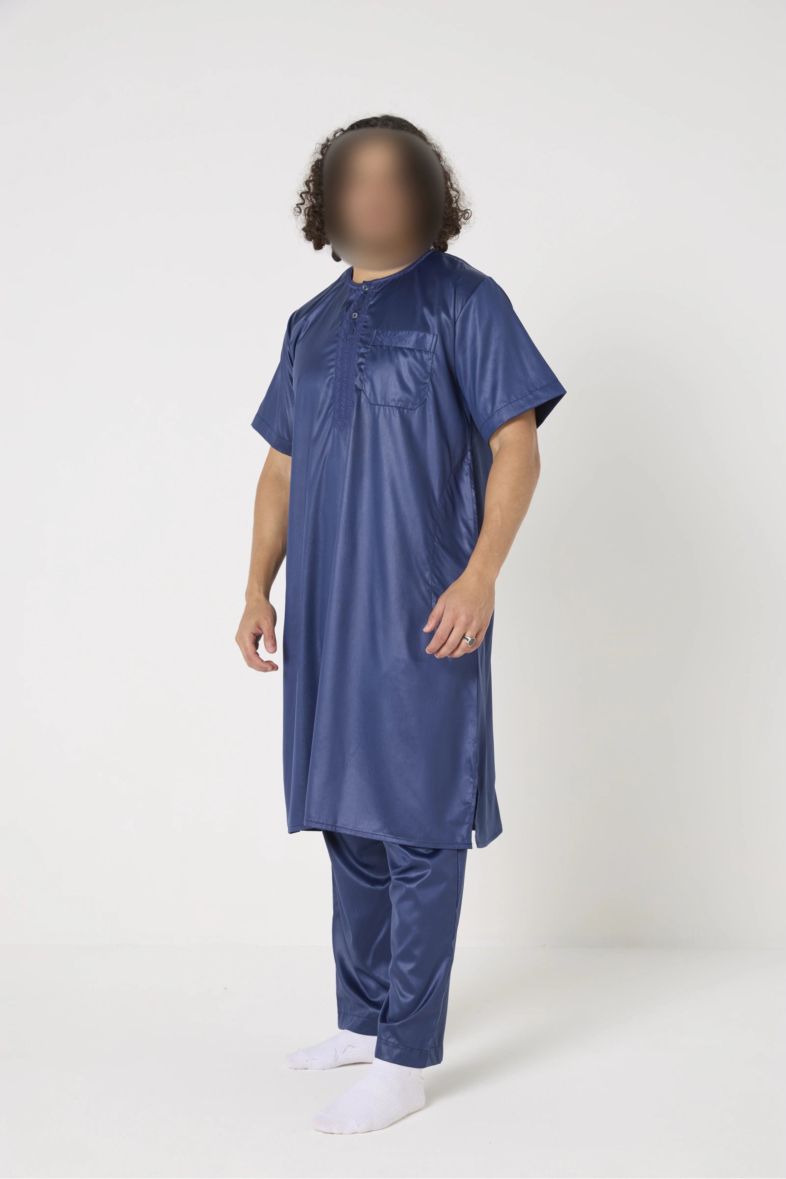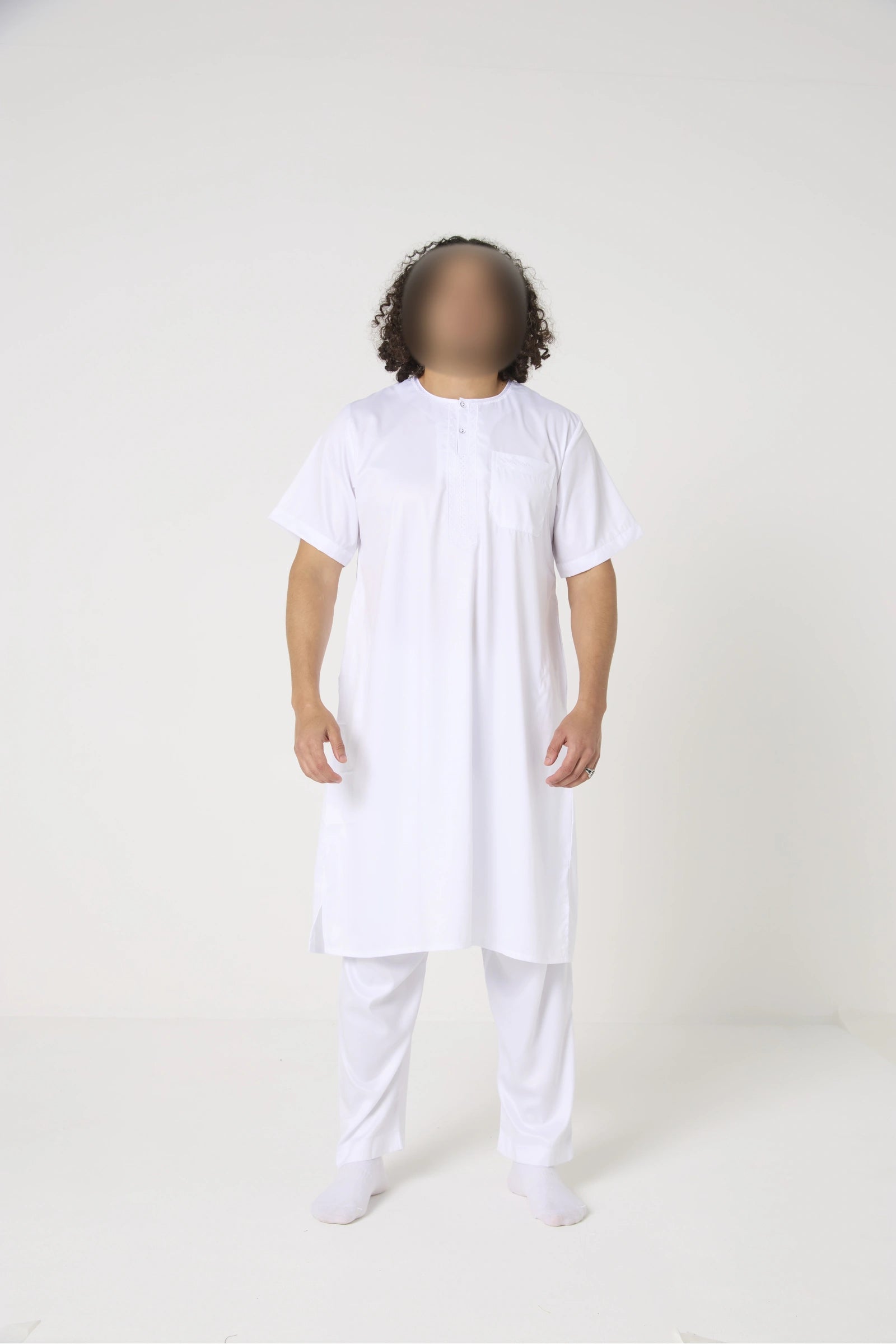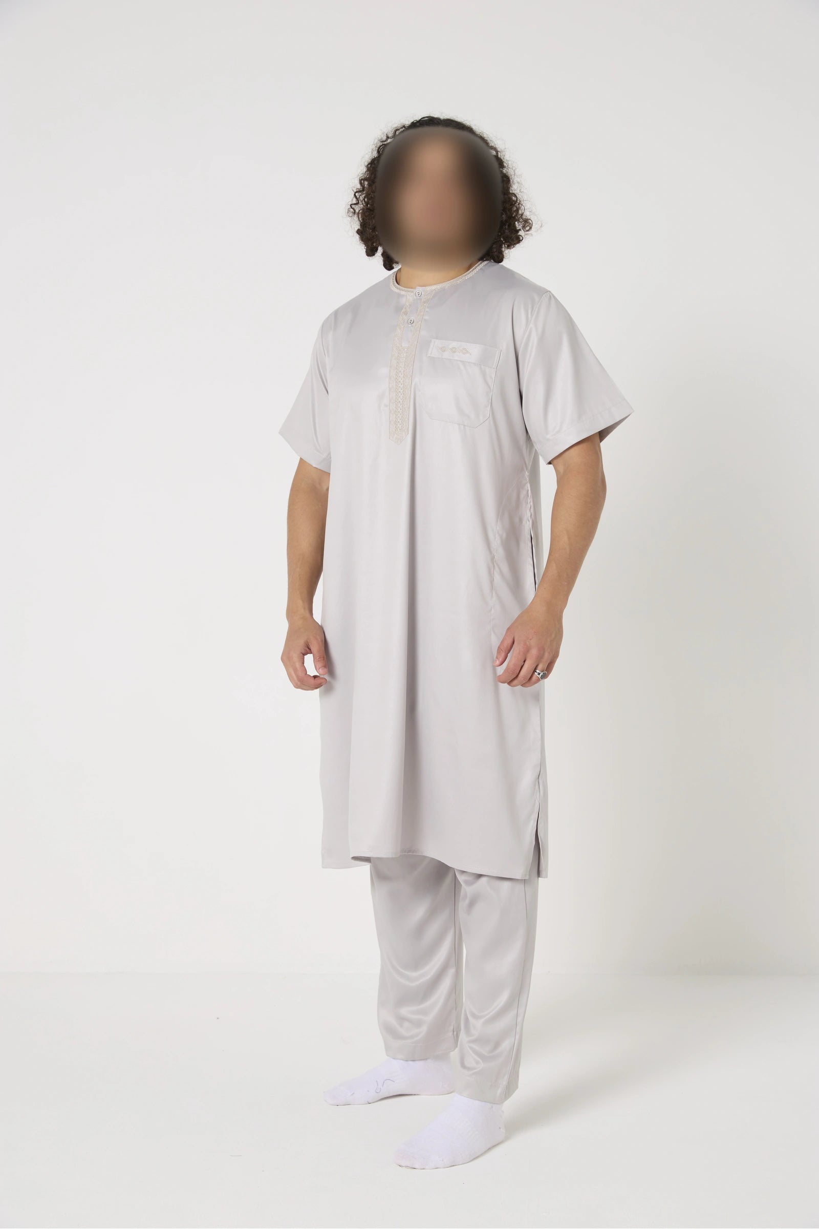 Conçu pour offrir un maximum de confort en toute saison, cet ensemble à manches courtes est idéal pour les grandes occasions, les prières ou tout simplement pour un style soigné au quotidien. Le pantalon à taille élastique s’adapte facilement à toutes les morphologies, complétant un ensemble parfaitement coordonné. Ce modèle séduit par sa sobriété et son côté pratique, sans négliger le raffinement.