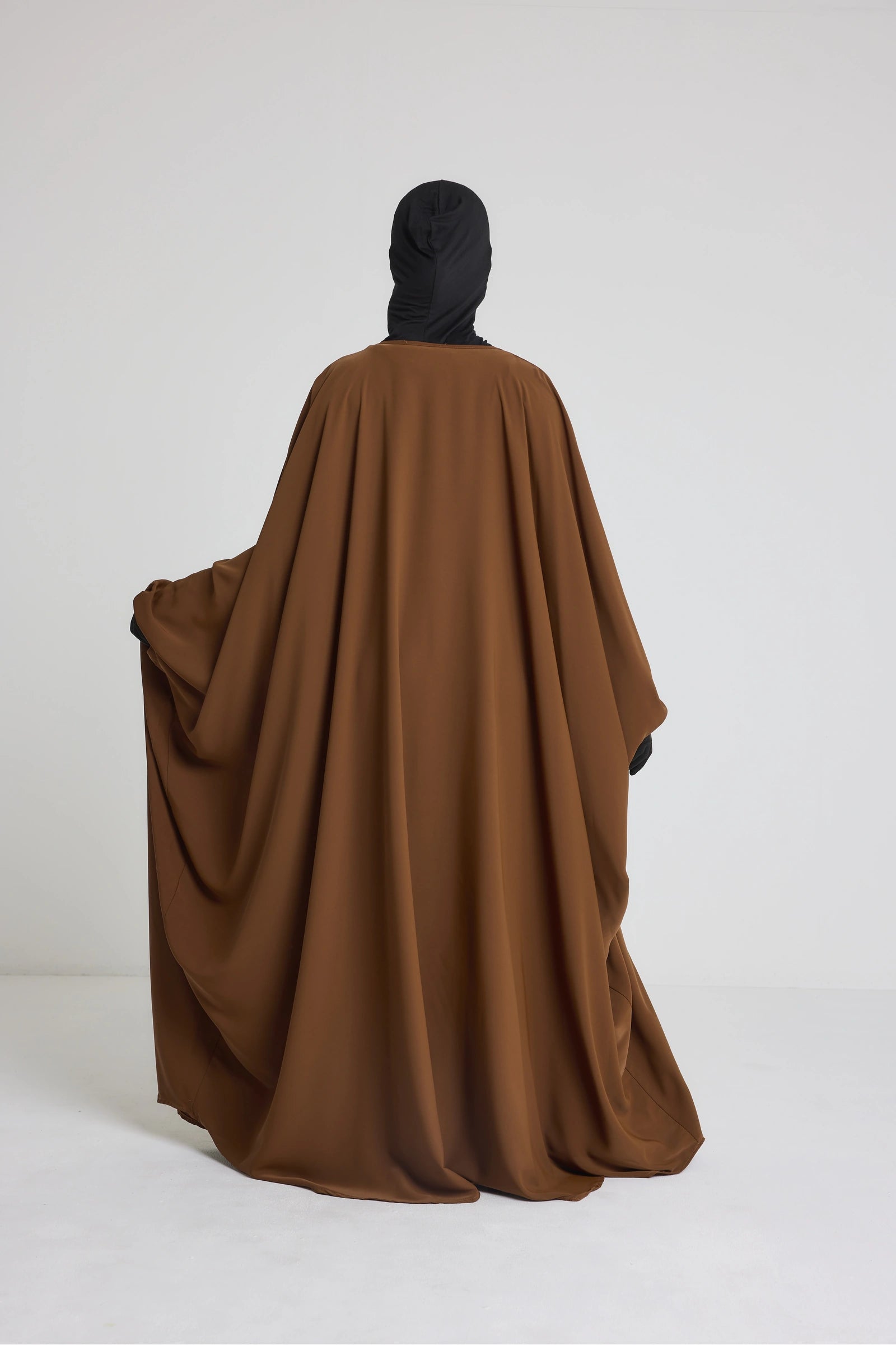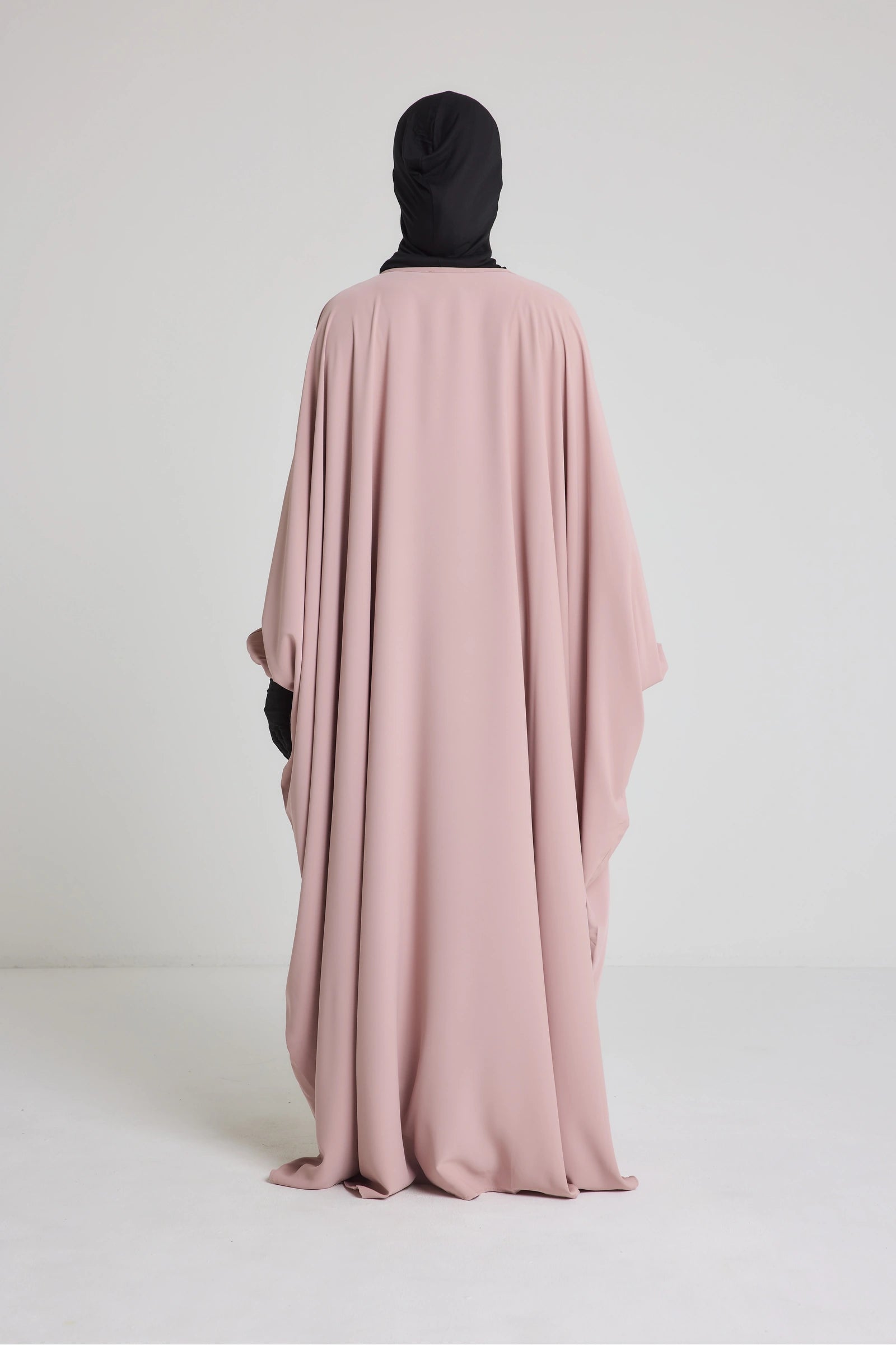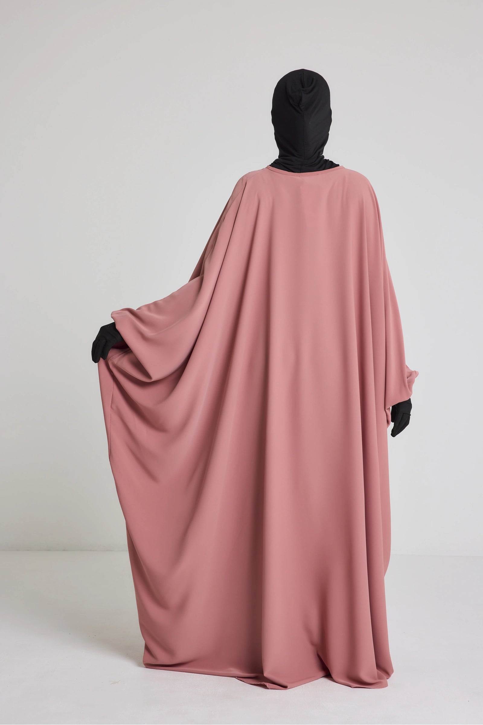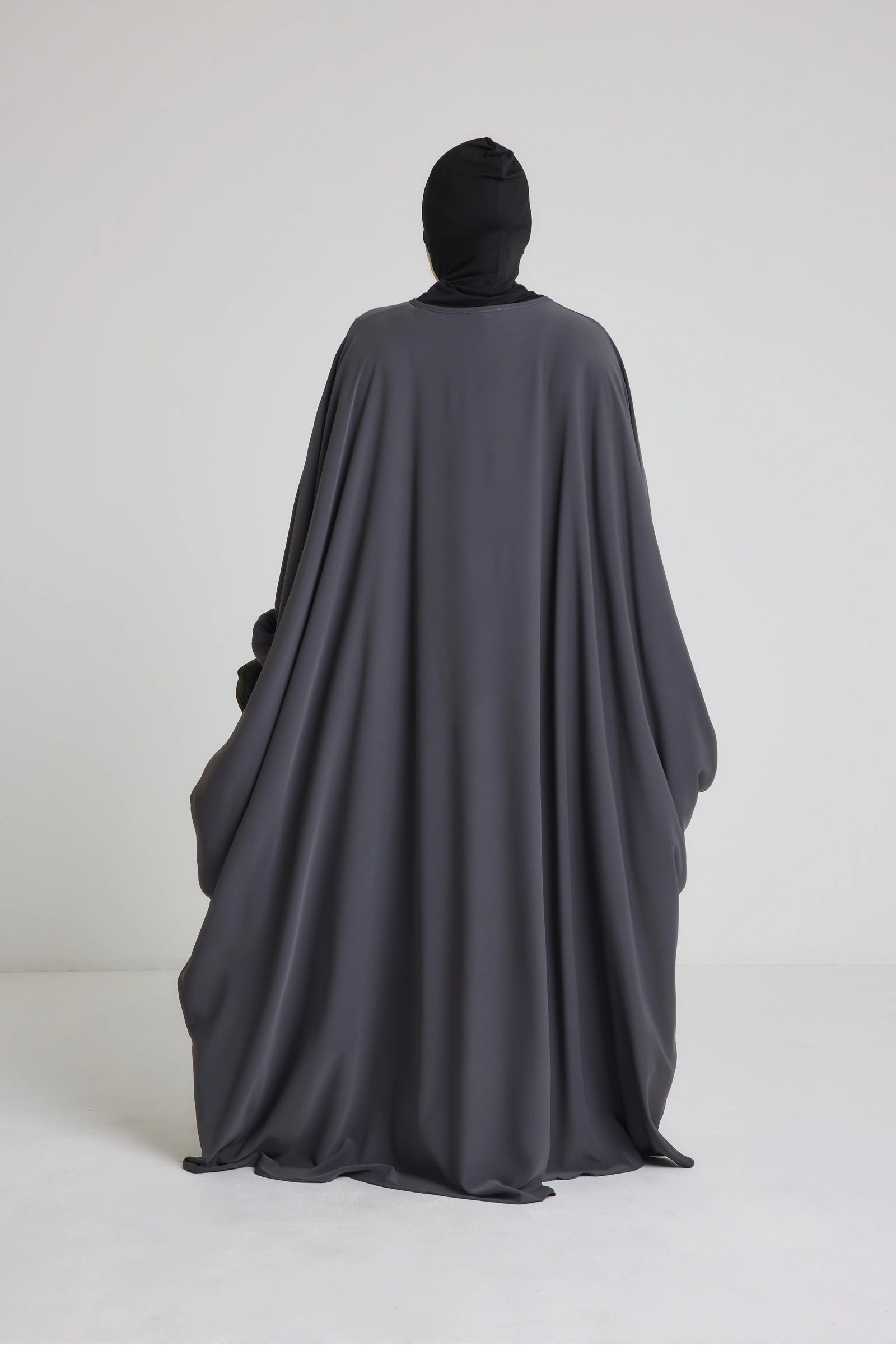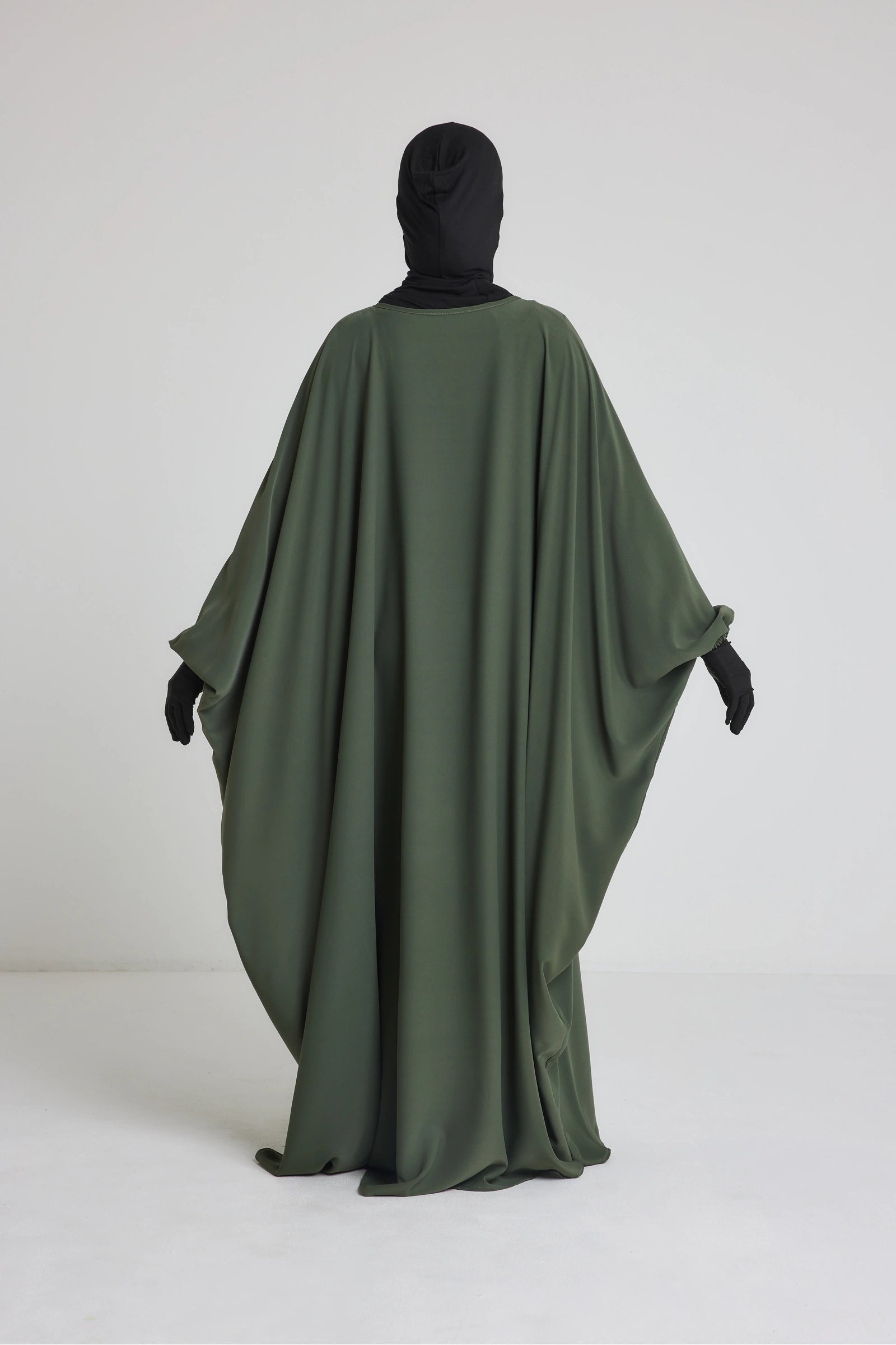 Les manches larges apportent un confort supplémentaire au niveau des bras, tandis que les poignets resserrés maintiennent la tenue avec finesse et élégance. Ce détail crée un joli contraste dans la coupe, tout en offrant un maintien optimal sans gêne. La robe Syhem peut être portée telle quelle ou accompagnée d’un khimar ou d’un jilbeb pour une tenue complète et harmonieuse.